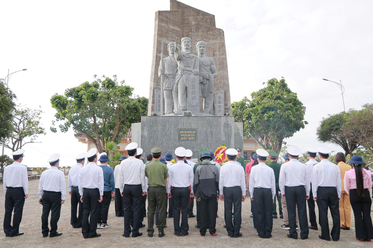 Đoàn dâng hương, dâng hoa tại Đài tưởng niệm Đội Hoàng Sa kiêm quản Bắc Hải