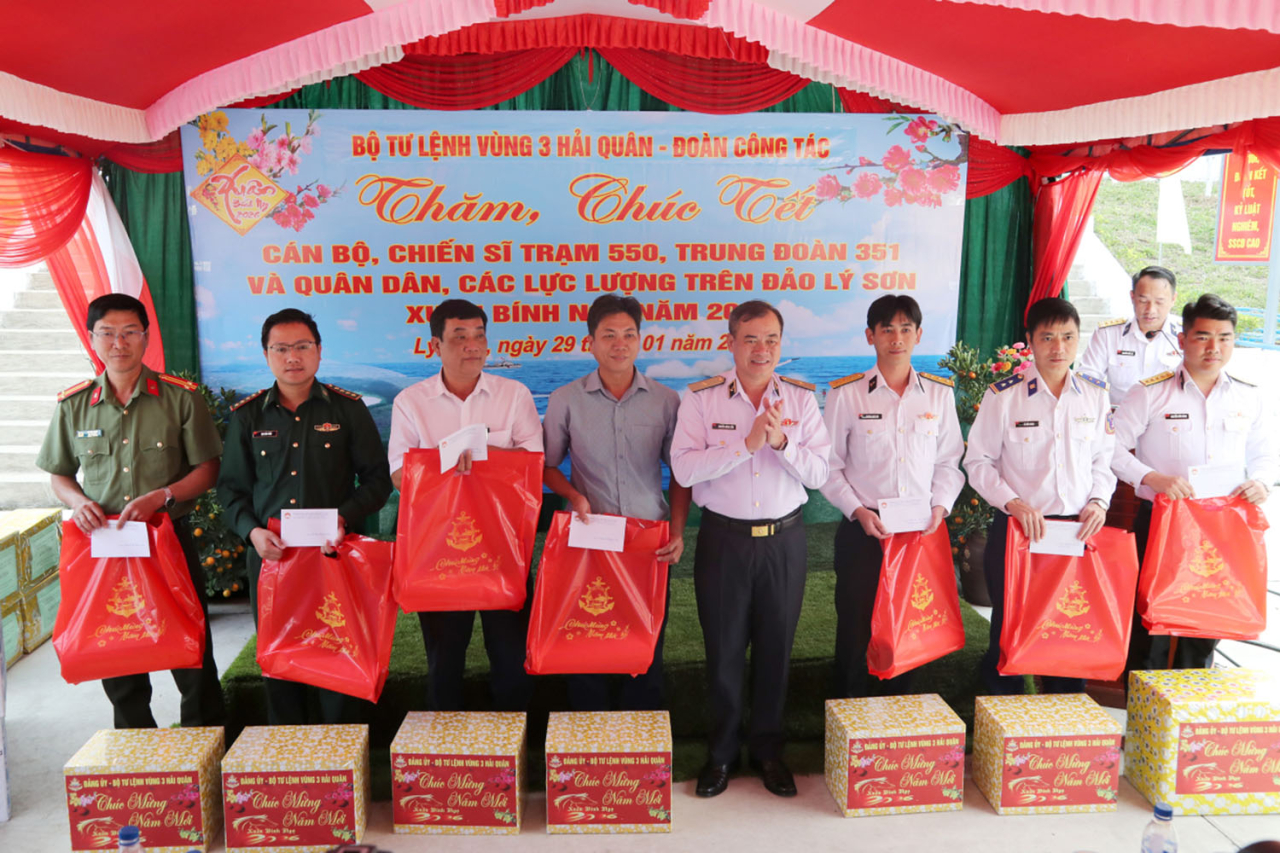 Đoàn công tác trao tặng quà Tết cho quân dân trên đặc khu Lý Sơn