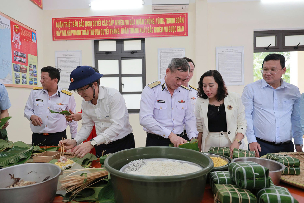 Đoàn công tác cùng quân và dân trên đặc khu Cồn Cỏ gói bánh chưng