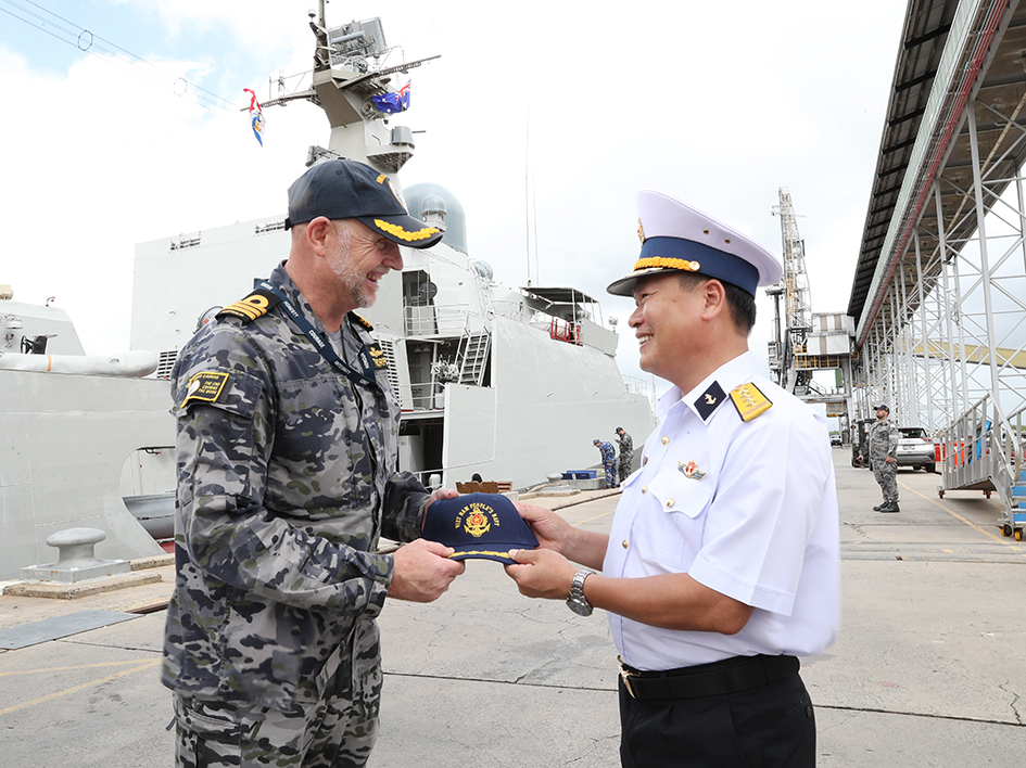 Đón đoàn công tác và tàu tại cảng có Trung tá Thorpe, Chỉ huy Căn cứ HMAS Cairns, Hải quân Hoàng gia Australia. Trao đổi với Đại tá Nguyễn Minh Lành, Phó Tham mưu trưởng Vùng 4, Trưởng đoàn công tác của Hải quân nhân dân Việt Nam trên Tàu 016-Quang Trung, Trung tá Thorpe bày tỏ vui mừng được đón đoàn công tác và Tàu 016 vào làm công tác hậu cần, kỹ thuật, tham quan tại thành phố Cairns, thêm rằng, trong thời gian Tàu 016 lưu lại tại đây, Căn cứ HMAS Cairns sẽ sẵn sàng hỗ trợ, giúp đỡ kịp thời.