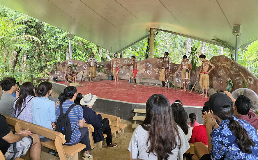 Du khách xem biểu diễn vũ điệu truyền thống của bộ tộc Pamagirri