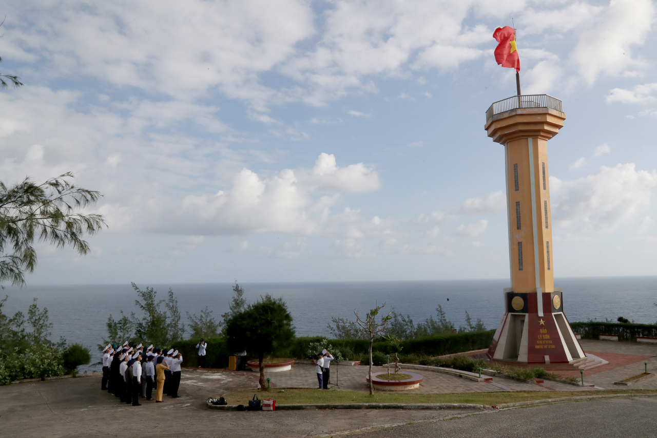 Các lực lượng đặc khu Lý Sơn thực hiện nghi lễ chào cờ Tổ quốc