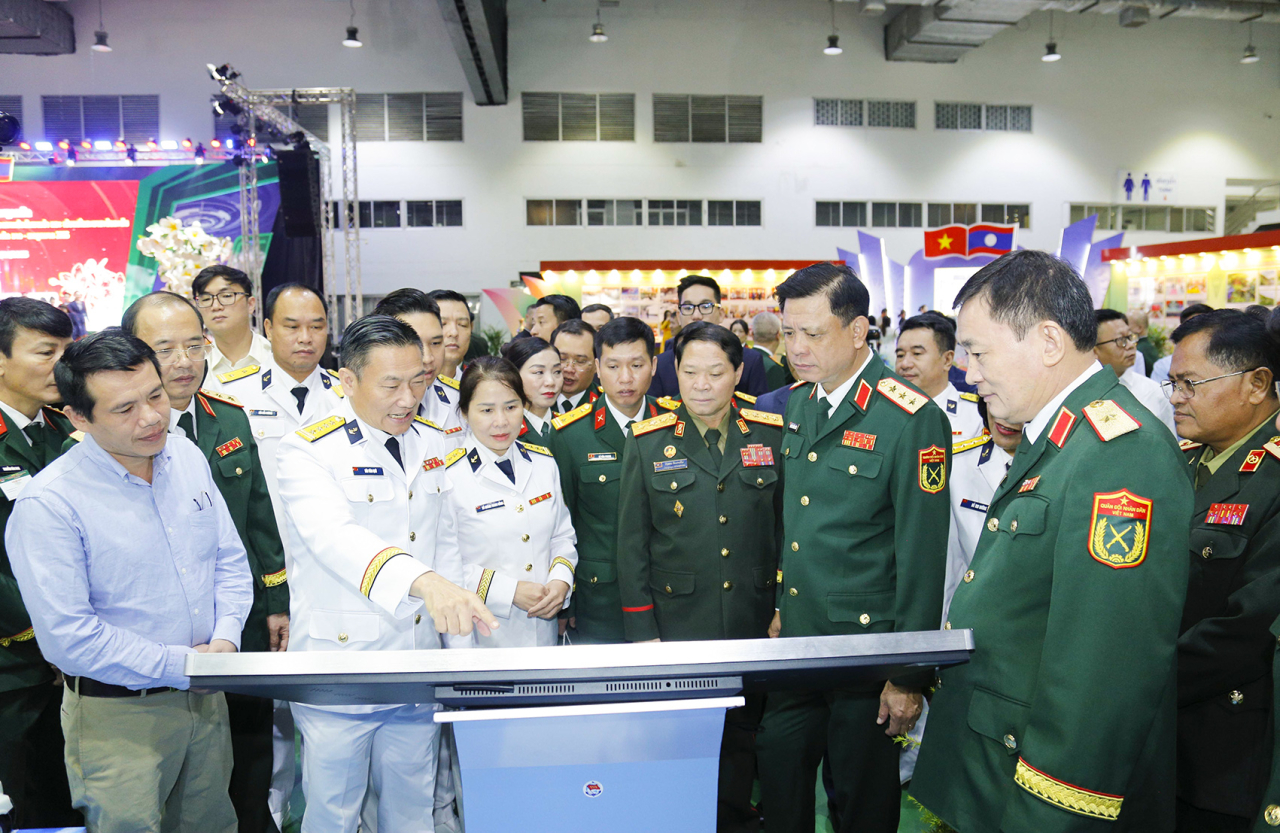 Ở khu vực trưng bày, Tân cảng Sài Gòn giới thiệu nhiều thành tựu nổi bật về sản xuất kinh doanh và chuyển đổi số, trải nghiệm thực tế ảo (VR360) tham quan Cảng Tân cảng Cát Lái và Cảng Quốc tế Tân cảng Cái Mép thu hút sự chú ý đặc biệt của người dân Lào và du khách quốc tế.