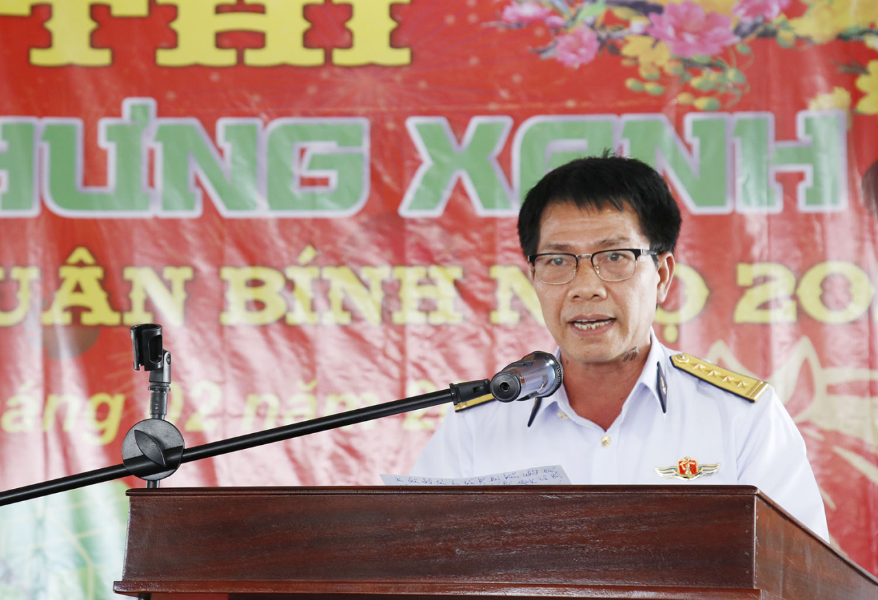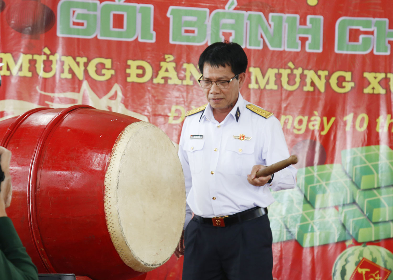 Đại tá Vũ Đình Hiển phát biểu và đánh trống khai hội