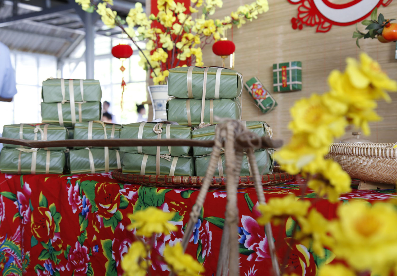 Nhiều đội thể hiện sự sáng tạo trang trí những chiếc bánh chưng theo chủ đề và sự kiện