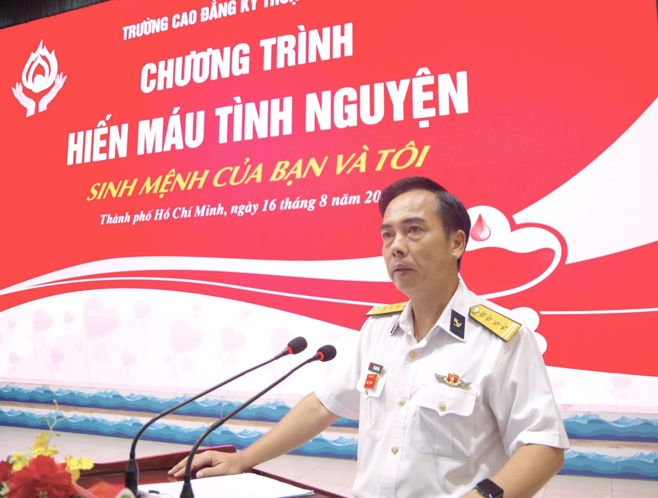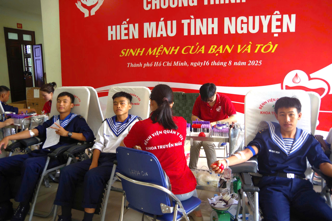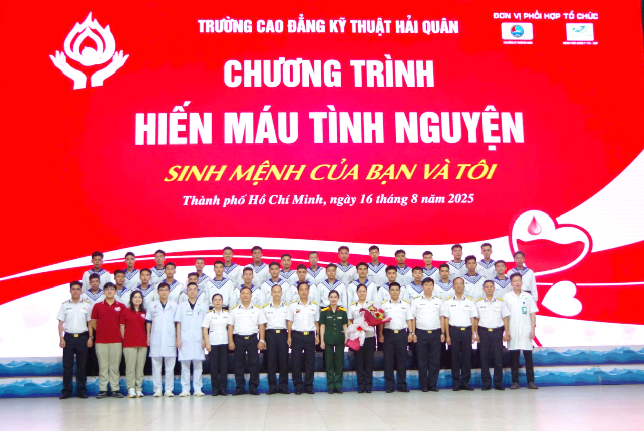 HQ Online - Sáng 16/8, tại TP. Hồ Chí Minh, Trường Cao đẳng Kỹ thuật Hải quân tổ chức Chương trình hiến máu nhân đạo “Sinh mệnh của bạn và tôi” đợt 2 năm 2025. Chương trình được đông đảo cán bộ, giảng viên, nhân viên, học viên, chiến sỹ tích cực hưởng ứng.