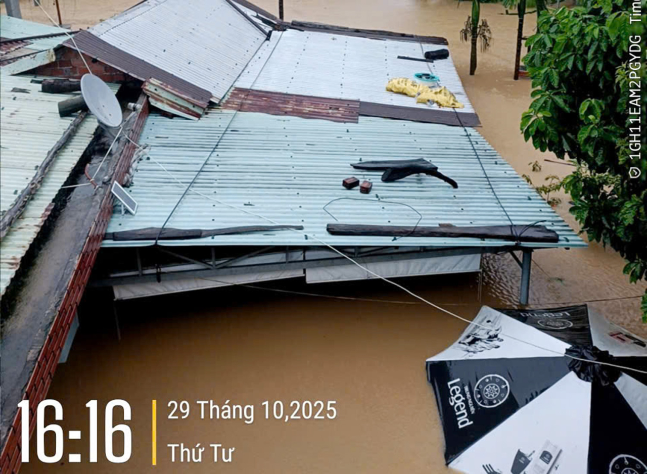 Ngôi nhà chị Lê Thị Hiền Trang đợt bão lũ cuối tháng 10/2025 (Ảnh nhân vật cung cấp)