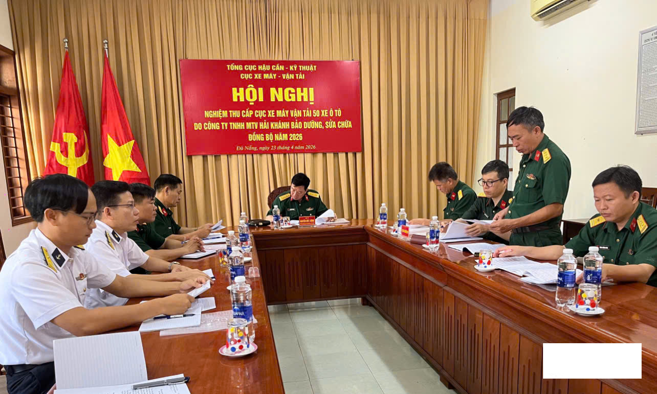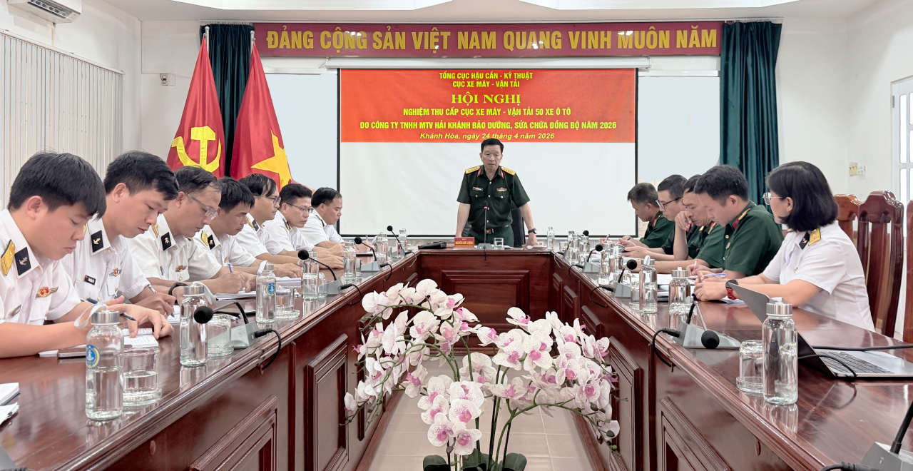 HQ Online - Từ ngày 23 đến 24/4/2026 Hội đồng nghiệm thu của Cục Xe máy-Vận tải, Tổng cục Hậu cần - Kỹ thuật đã tiến hành nghiệm thu 50 xe ôtô sau bảo dưỡng, sửa chữa nhỏ, đồng bộ tại Công ty TNHH MTV Hải Khánh (Nhà máy Z753, Cục Hậu cần-Kỹ thuật Hải quân). Đại tá Nguyễn Đức Lượng, Phó Cục trưởng Cục Xe máy-Vận tải, Chủ tịch Hội đồng nghiệm thu, chủ trì.