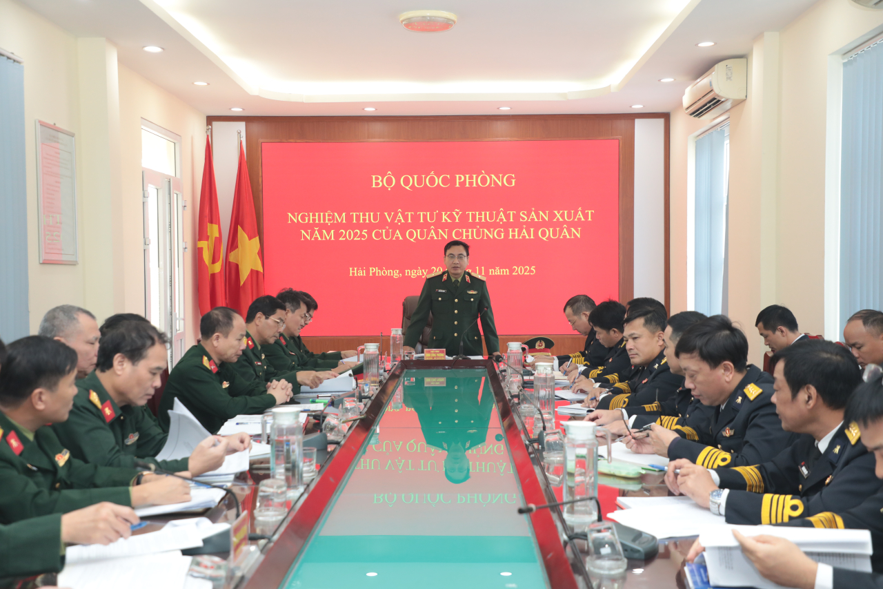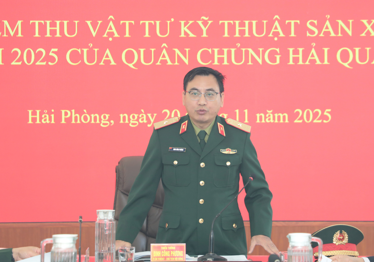 HQ Online - Sáng 20/11, tại Hải Phòng, Hội đồng nghiệm thu cấp Bộ Quốc phòng tiến hành nghiệm thu vật tư kỹ thuật sản xuất năm 2025 của Quân chủng Hải quân. Thiếu tướng, TS Đinh Công Phương, Phó Chủ nhiệm Tổng cục Hậu cần-Kỹ thuật, Chủ nhiệm Hội đồng nghiệm thu chủ trì.