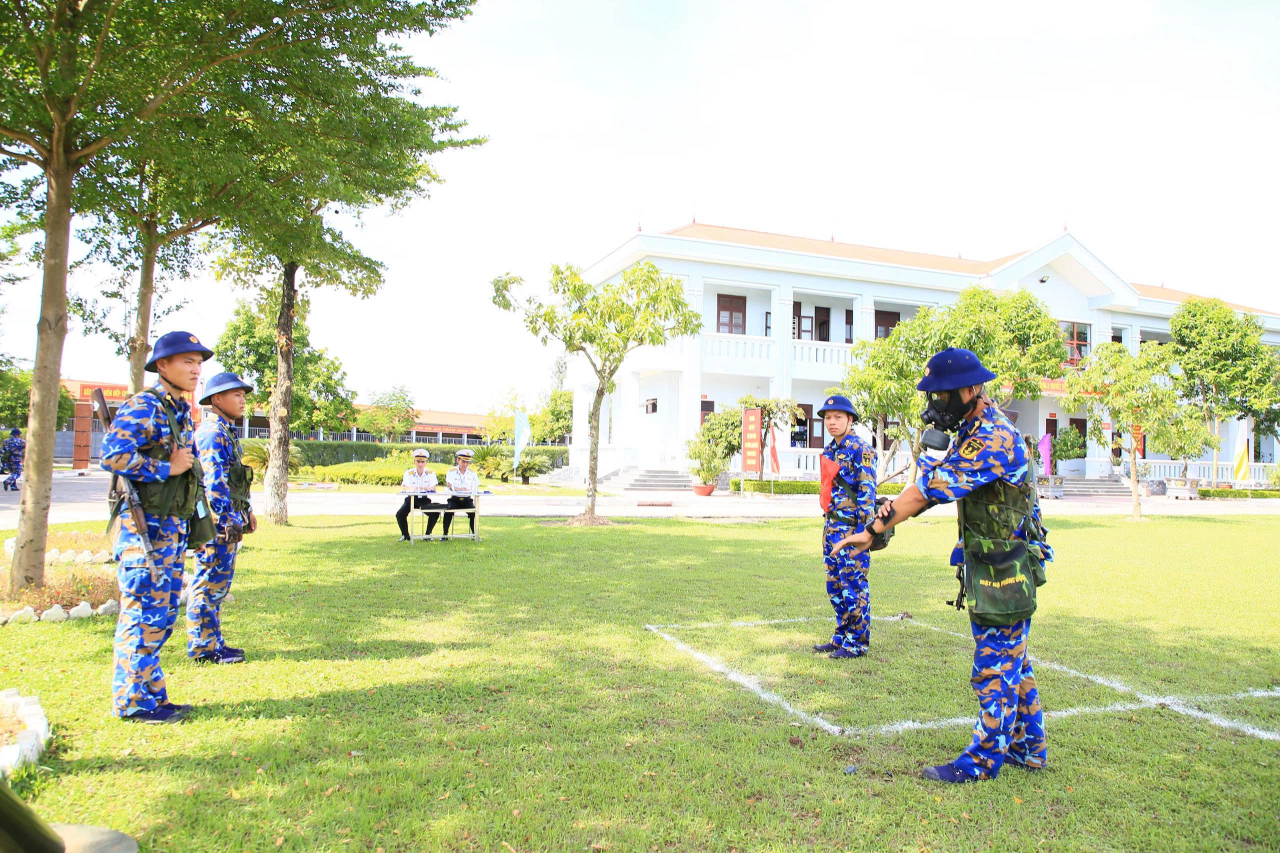 Các chiến sĩ thuần thục cách sử dụng mặt nạ phòng độc