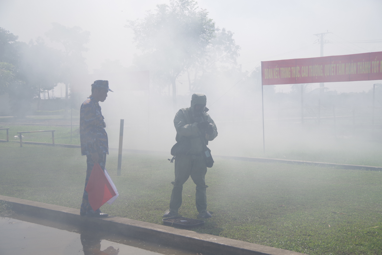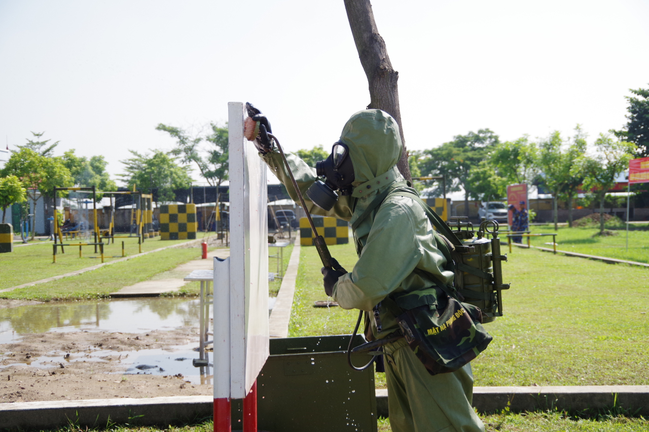 Đây là nội dung nối tiếp ngay sau vượt chướng ngại vật. Thí sinh giữ nhịp thở đều, thao tác nhanh chóng, chính xác, thể hiện tính kỷ luật và kỹ năng thuần thục trong thực hiện trinh sát chất độc hoá học và tiêu tẩy, tái hiện sát thực công việc hằng ngày của bộ đội phòng hóa trên thao trường.
