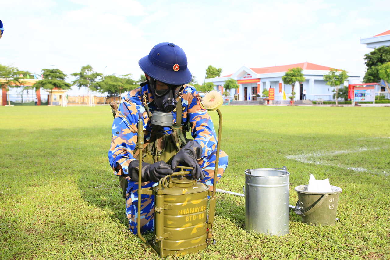 Thí sinh tiêu tẩy, làm sạch khu vực nhiễm chất độc hoá học