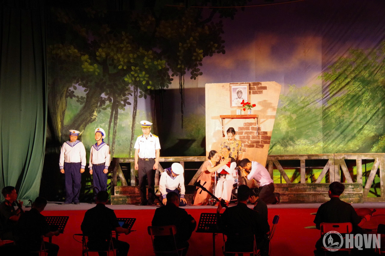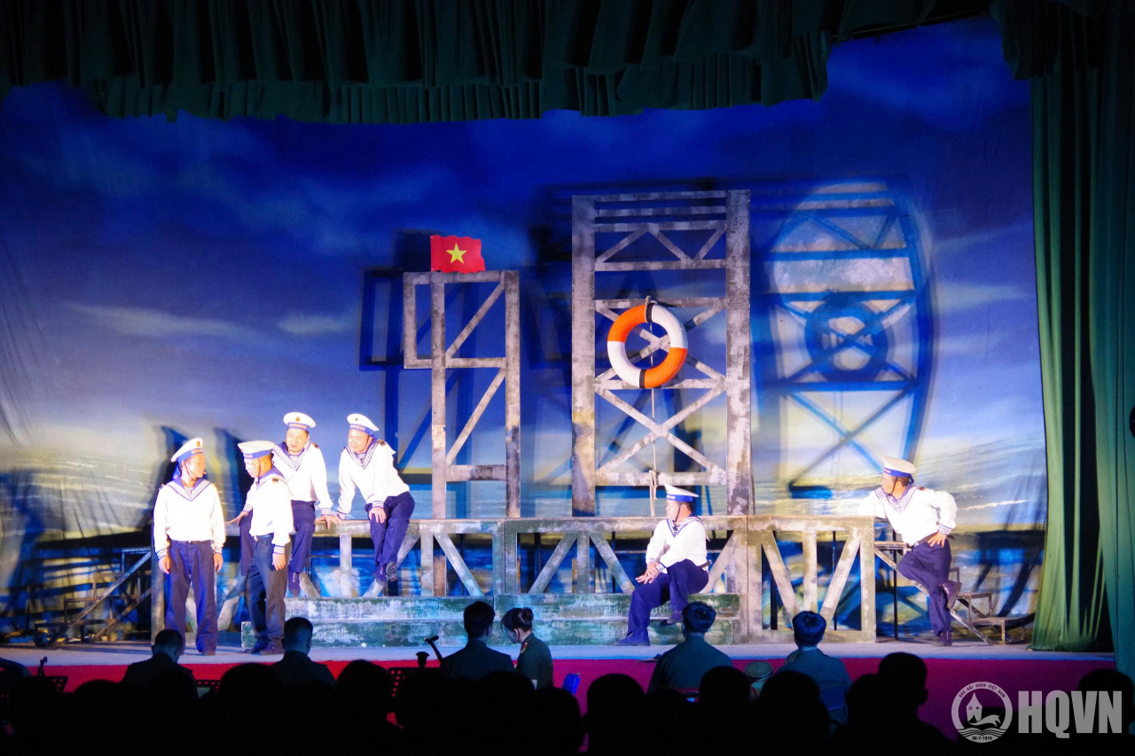 HQ Online - Tối 17/4, tại phường Bạch Đằng, TP. Hải Phòng, Nhà hát Chèo Quân đội đã biểu diễn vở “Đất liền và biển cả” phục vụ cán bộ, chiến sĩ Tiểu đoàn 158. Đây là chuỗi hoạt động hướng tới chào mừng kỷ niệm 51 năm Ngày giải phóng miền Nam thống nhất đất nước (30/4/1975 – 30/4/2026). Đại tá Trần Văn Nghĩa, Phó Chủ nhiệm Chính trị Vùng 1 dự và động viên chương trình.