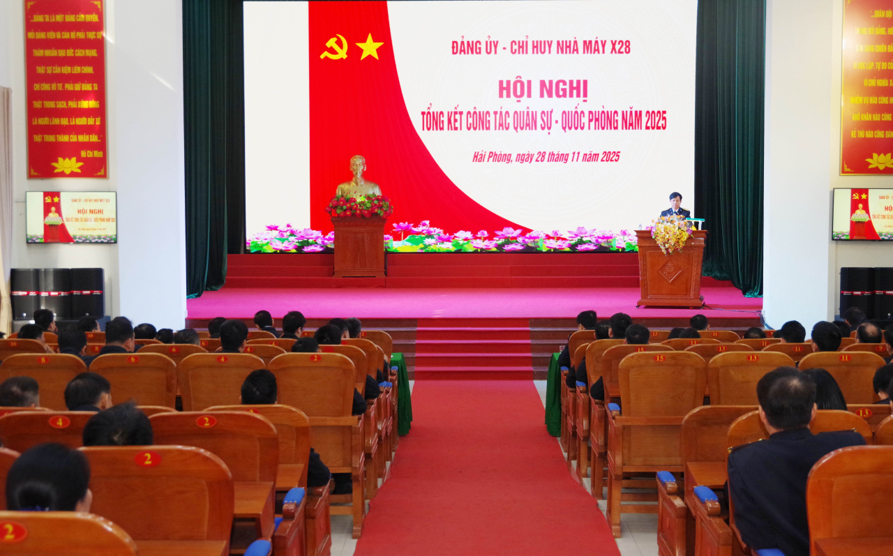 Báo cáo trung tâm cùng các tham luận tại hội nghị đánh giá: Năm 2025, Nhà máy X28 đã bám sát sự lãnh đạo, chỉ đạo của Đảng ủy Cục Hậu cần-Kỹ thuật; triển khai đồng bộ, quyết liệt các mặt công tác, hoàn thành tốt chỉ tiêu, kế hoạch sản xuất, sửa chữa các loại vũ khí dưới nước.
