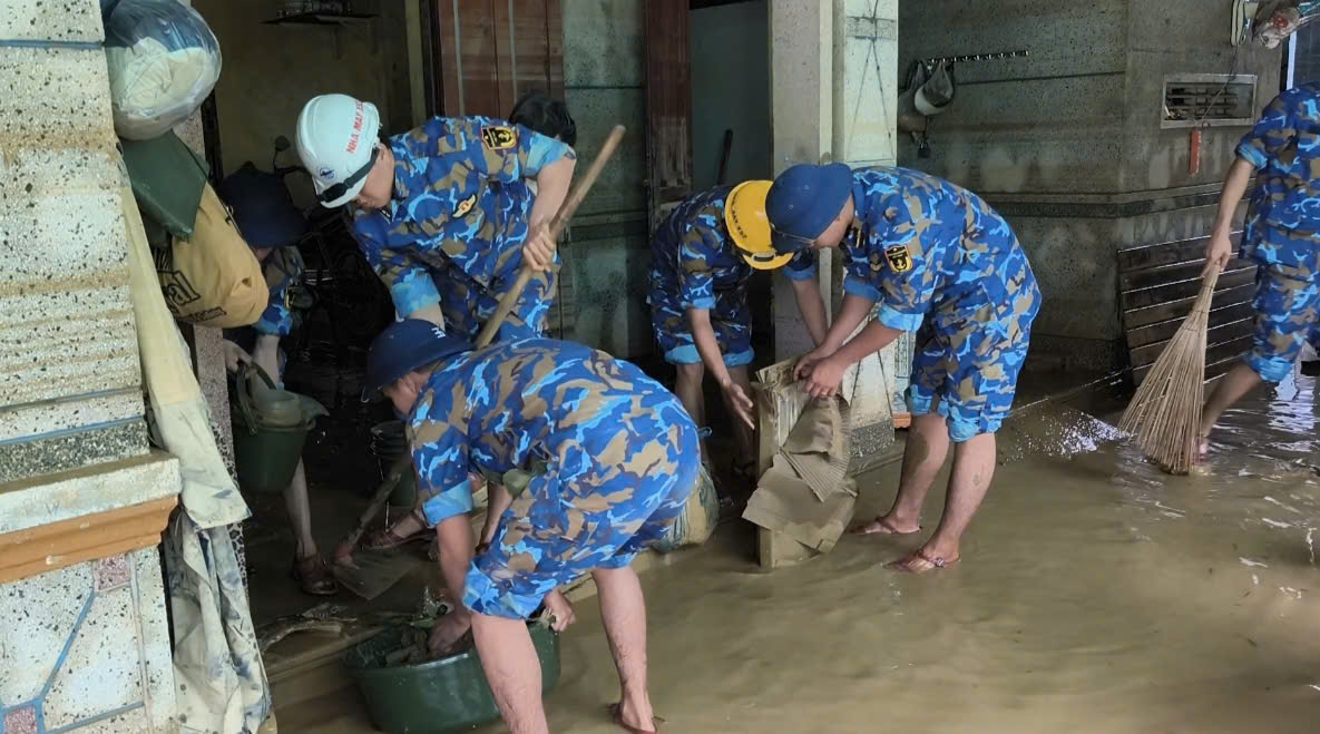 Cán bộ, chiến sĩ Nhà máy X52 giúp nhân dân khắc phục lũ lụt