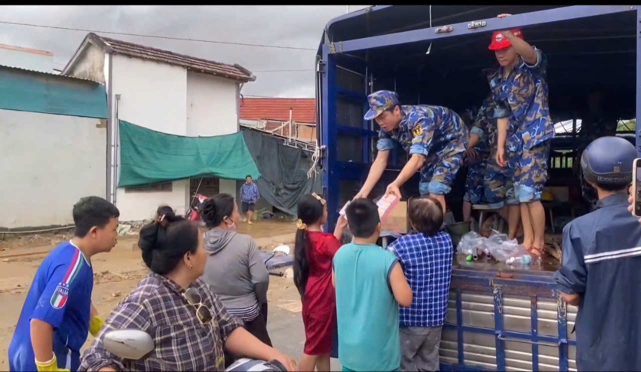 HQ Online - Ngày 22/11, Nhà máy X52, Cục Hậu cần – Kỹ thuật Hải quân tiếp tục huy động 4 xe ô tô , 5 tổ công tác gồm 50 cán bộ, chiến sĩ do Đại tá Phạm Bá Bằng, Chính ủy; Đại tá Nguyễn Minh Thùy, Phó Giám đốc Nhà máy trực tiếp chỉ đạo giúp nhân dân vùng lũ Khánh Hòa.