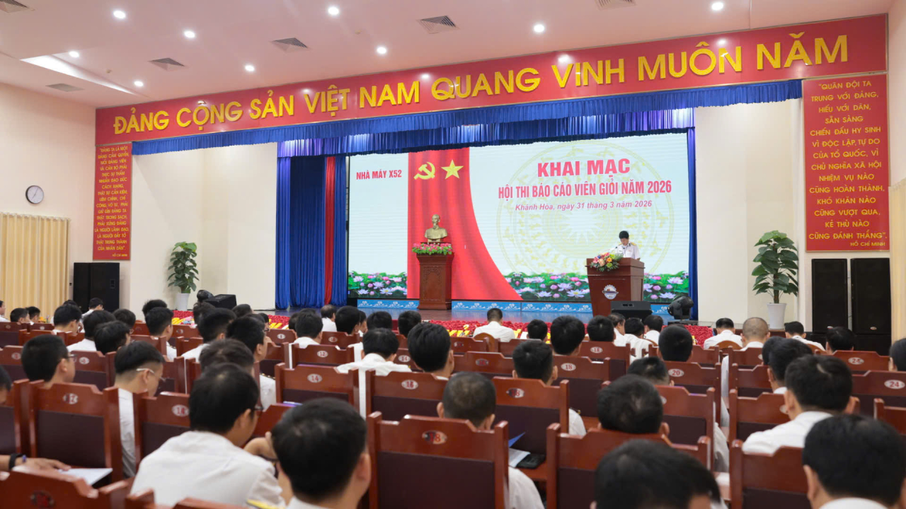 HQ Online - Ngày 31/3, tại phường Bắc Cam Ranh, tỉnh Khánh Hòa, Nhà máy X52, Cục Hậu cần - Kỹ thuật Hải quân tổ chức Hội thi báo cáo viên giỏi năm 2026. Đại tá Phạm Bá Bằng, Bí thư Đảng ủy, Chính ủy Nhà máy chỉ đạo.