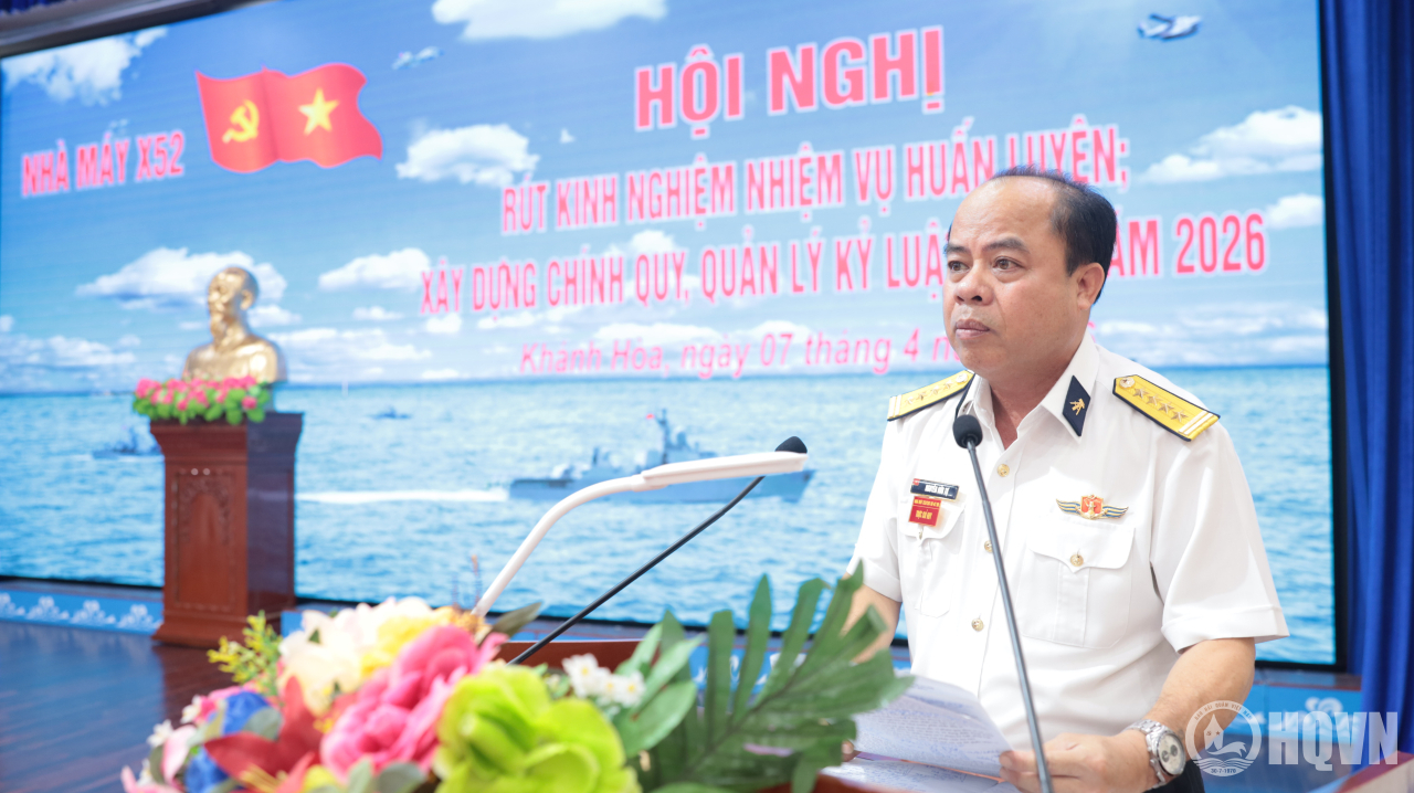 HQ Online - Chiều 7/4, tại phường Bắc Cam Ranh, tỉnh Khánh Hòa, Nhà máy X52 (Cục Hậu cần - Kỹ thuật Hải quân) tổ chức Hội nghị rút kinh nghiệm nhiệm vụ huấn luyện; xây dựng chính quy, quản lý kỷ luật quý I năm 2026. Đại tá Nguyễn Hữu Tự, Phó Giám đốc Nhà máy chủ trì.