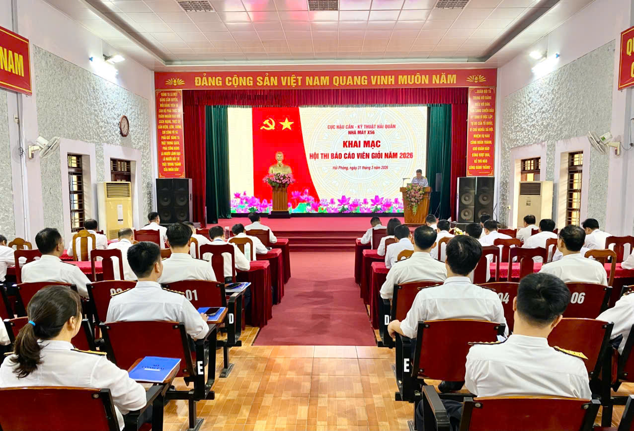HQ Online - Ngày 31/3, tại TP. Hải Phòng, Nhà máy X56, Cục Hậu cần - Kỹ thuật Hải quân tổ chức Hội thi báo cáo viên năm 2026. Đại tá Vũ Tiến Dũng, Phó Chủ nhiệm Chính trị Cục Hậu cần - Kỹ thuật Hải quân dự, chỉ đạo; cùng dự có các đồng chí trong Đảng ủy, Ban Giám đốc Nhà máy.