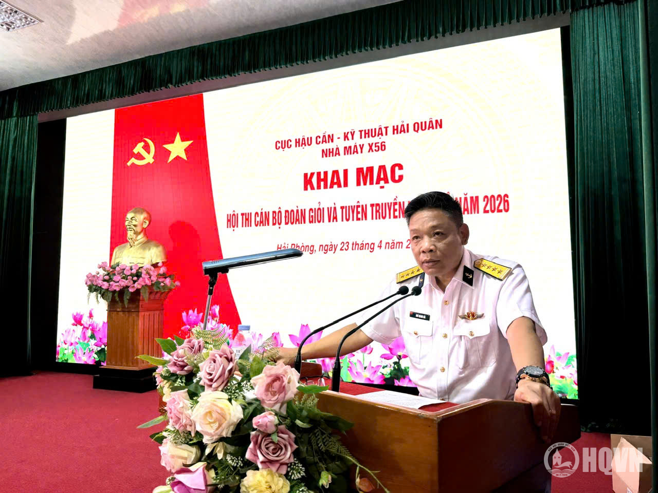 HQ Online - Chiều 23/4, tại phường Hải An, TP Hải Phòng, Nhà máy X56, Cục Hậu cần – Kỹ thuật Hải quân đã tổ chức thành công Hội thi cán bộ đoàn giỏi và tuyên truyền viên trẻ năm 2026. Dự, chỉ đạo có Đại tá Ngô Quang Hải, Bí thư Đảng ủy, Chính ủy Nhà máy.
