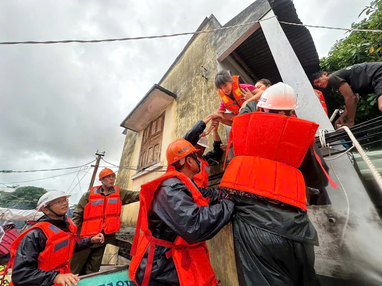 Cán bộ, chiến sĩ Nhà máy Z753 đã không quản mưa gió, dầm mình giữa dòng nước xoáy để đưa người dân đến nơi an toàn, góp phần hạn chế tối đa thiệt hại về người và tài sản.