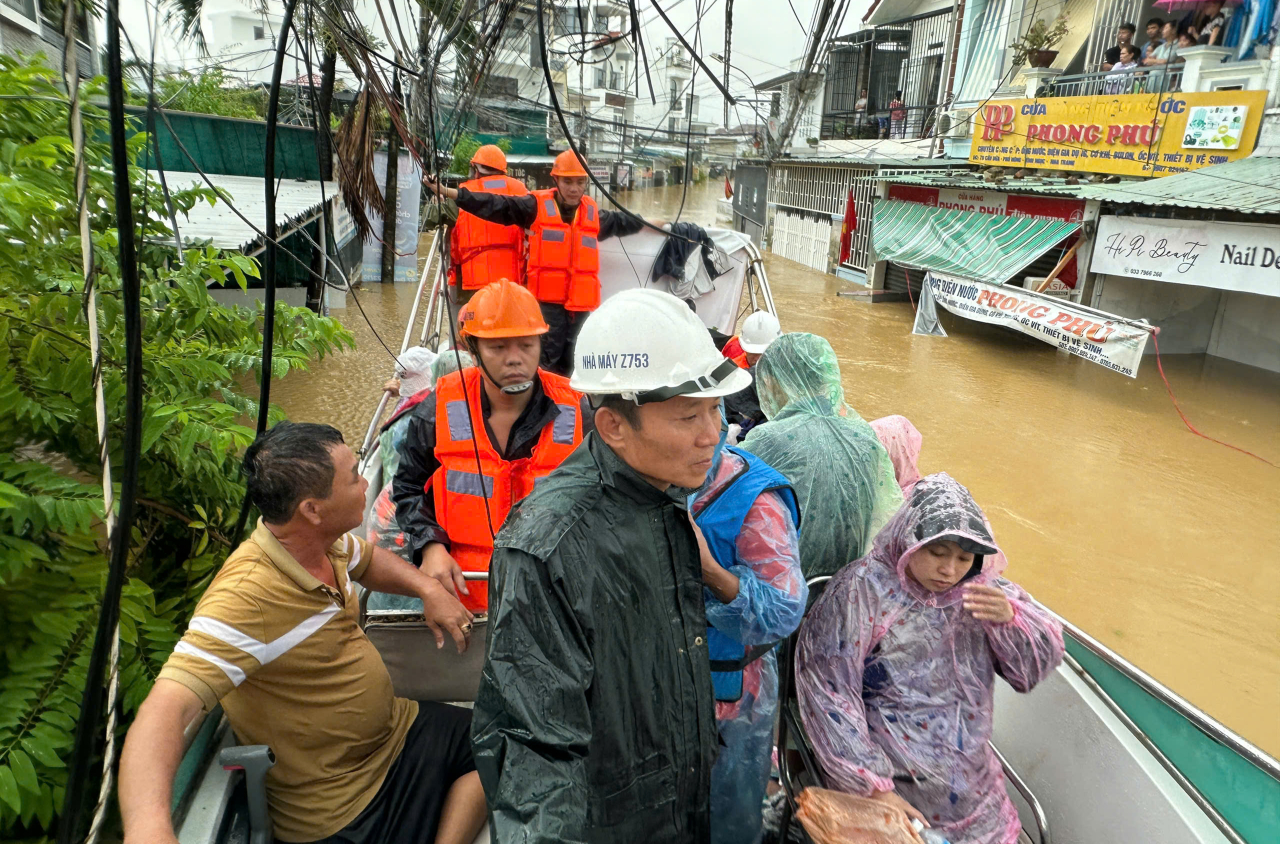 Lực lượng cứu hộ của Nhà máy Z753 giúp dân vùng ngập lụt tại các phường Bắc Nha Trang và Tây Nha Trang