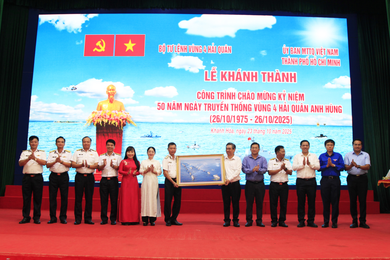 Cùng ngày, tại Căn cứ quân sự Cam Ranh, đồng chí Nguyễn Phước Lộc, Phó Bí thư Thành ủy, Chủ tịch Ủy ban MTTQ Việt Nam TP. Hồ Chí Minh, cùng đoàn công tác dự Lễ khánh thành các công trình hỗ trợ Vùng 4 Hải quân nhân kỷ niệm 50 năm Ngày truyền thống.