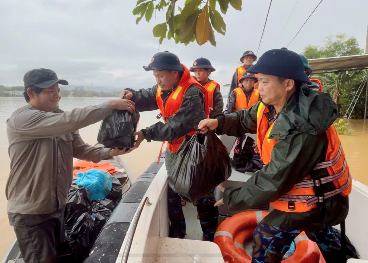 HQ Online - Sáng 30/10, Bộ Tư lệnh Vùng 3 Hải quân tiếp tục điều động hơn 50 cán bộ, chiến sĩ cùng 4 xuồng máy mang theo hơn 1 tấn lương khô, 1,5 tấn gạo, 200 thùng mì tôm, 150 thùng nước suối, 50 thùng sữa, quần áo cùng hơn 32 triệu đồng tiền mặt đến hỗ trợ người dân vùng lũ trên địa bàn TP Đà Nẵng.