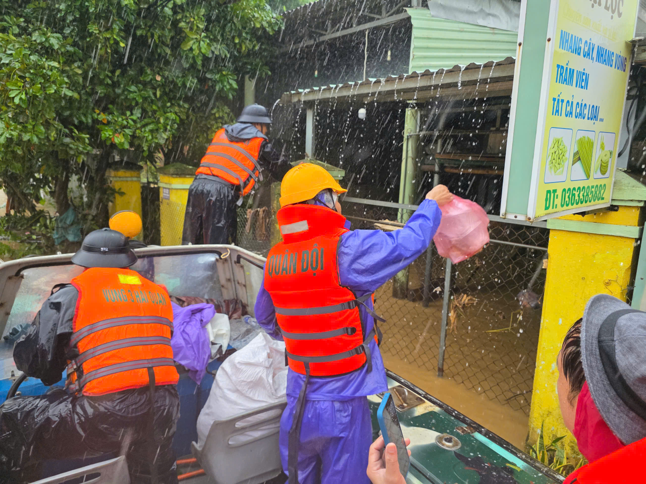 Trong buổi sáng ngày 30/10, cán bộ, chiến sĩ Vùng 3 đã vận chuyển hàng trăm phần quà gồm gạo, lương khô, mỳ tôm, nước suối và sữa trao tận tay người dân vùng lũ