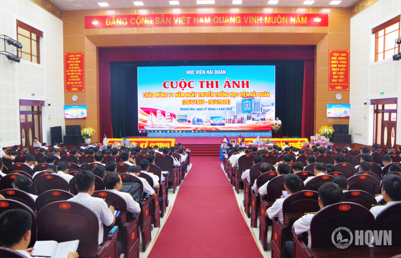 HQ Online - Chiều 21/4, tại Khánh Hòa, Học viện Hải quân tổ chức phát động Cuộc thi ảnh chào mừng 71 năm Ngày truyền thống Học viện (26/4/1955 - 26/4/2026). Chuẩn Đô đốc Nguyễn Hữu Thoan, Chính ủy Học viện dự và chỉ đạo.