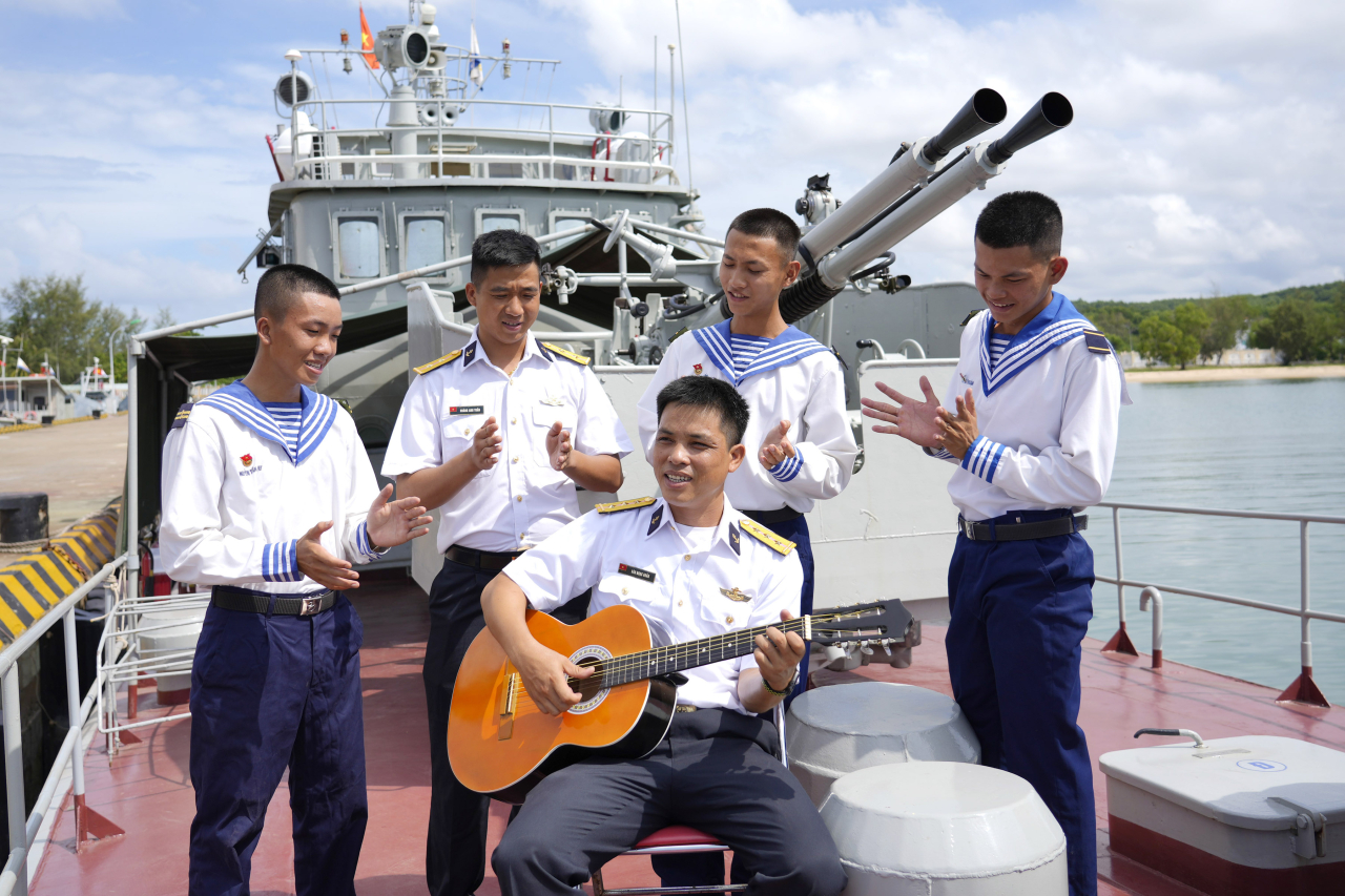 Phút giải lao trên boong tàu của cán bộ, chiến sĩ Tàu 253, Hải đội 512, Lữ đoàn 127