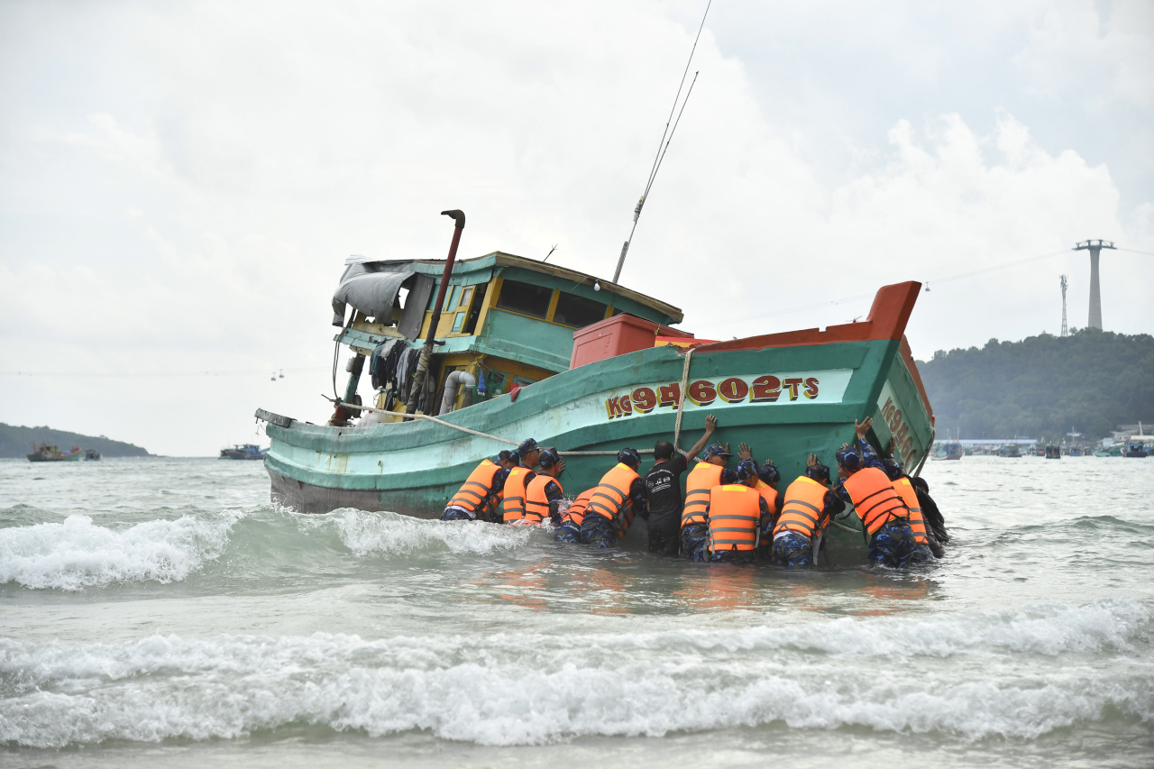 Cán bộ, chiến sĩ Lữ đoàn 127 cứu kéo tàu cá ngư dân bị mắc cạn