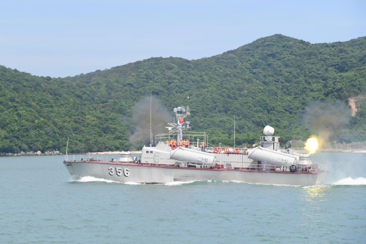 Tàu 356 bắn đạn thật trên biển. Ảnh: CTV