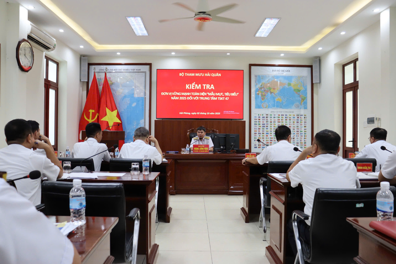 Chuẩn Đô đốc Hoàng Lương Ngọc, Phó Tham mưu trưởng Hải quân, Bí thư Đảng ủy Bộ Tham mưu chủ trì kiểm tra đơn vị vững mạnh toàn diện “mẫu mực, tiêu biểu” năm 2025 đối với Trung tâm 47. Ảnh: Văn Mạnh