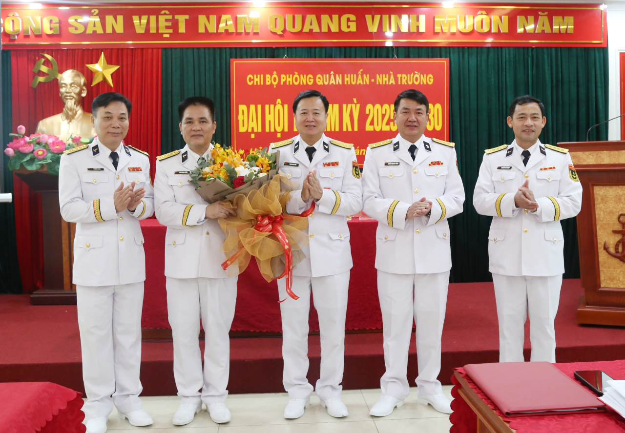 Đại tá Phạm Khoa Nam, Phó Bí thư Đảng ủy, Chủ nhiệm Chính trị Bộ Tham mưu tặng hoa chúc mừng Ban chấp hành Chi bộ Phòng Quân huấn-Nhà trường nhiệm kỳ 2025-2030. Ảnh: Hoàng Việt