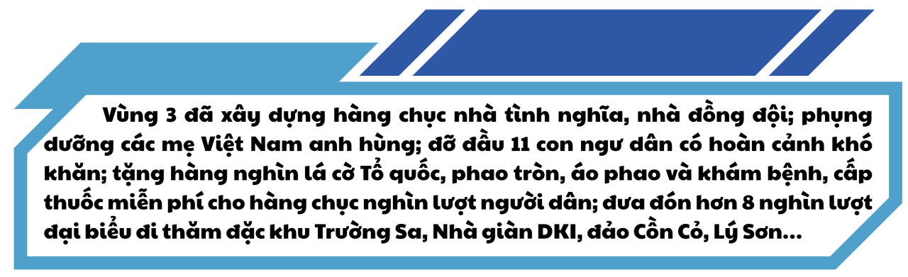 Nhờ đó, tình cảm giữa bộ đội Vùng 3 Hải quân và nhân dân ngày càng gắn bó mật thiết, phẩm chất cao đẹp “Bộ đội Cụ Hồ-Người chiến sĩ Hải quân” không ngừng tỏa sáng; góp phần xây dựng, củng cố vững chắc “thế trận lòng dân” trong bảo vệ chủ quyền biển đảo của Tổ quốc.