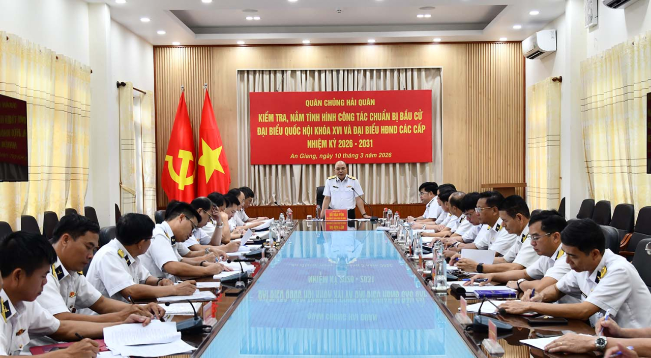 HQ Online - Sáng 10/3, tại đặc khu Phú Quốc (tỉnh An Giang), Chuẩn Đô đốc Đỗ Văn Yên, Phó Chính ủy Hải quân chủ trì kiểm công tác chuẩn bị bầu cử đại biểu Quốc hội khóa XVI và đại biểu HĐND các cấp nhiệm kỳ 2026-2031 tại Vùng 5 Hải quân.