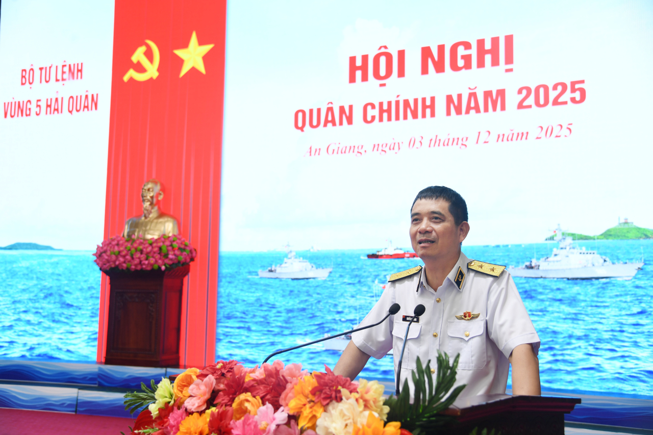 HQ Online - Chiều 3/12, tại đặc khu Phú Quốc, tỉnh An Giang, Bộ Tư lệnh Vùng 5 Hải quân tổ chức Hội nghị Quân chính năm 2025. Phó Đô đốc Nguyễn An Phong, Bí thư Đảng ủy, Chính ủy Quân chủng Hải quân dự và chỉ đạo. Chuẩn Đô đốc Trịnh Xuân Tùng, Tư lệnh Vùng 5 Hải quân chủ trì hội nghị.