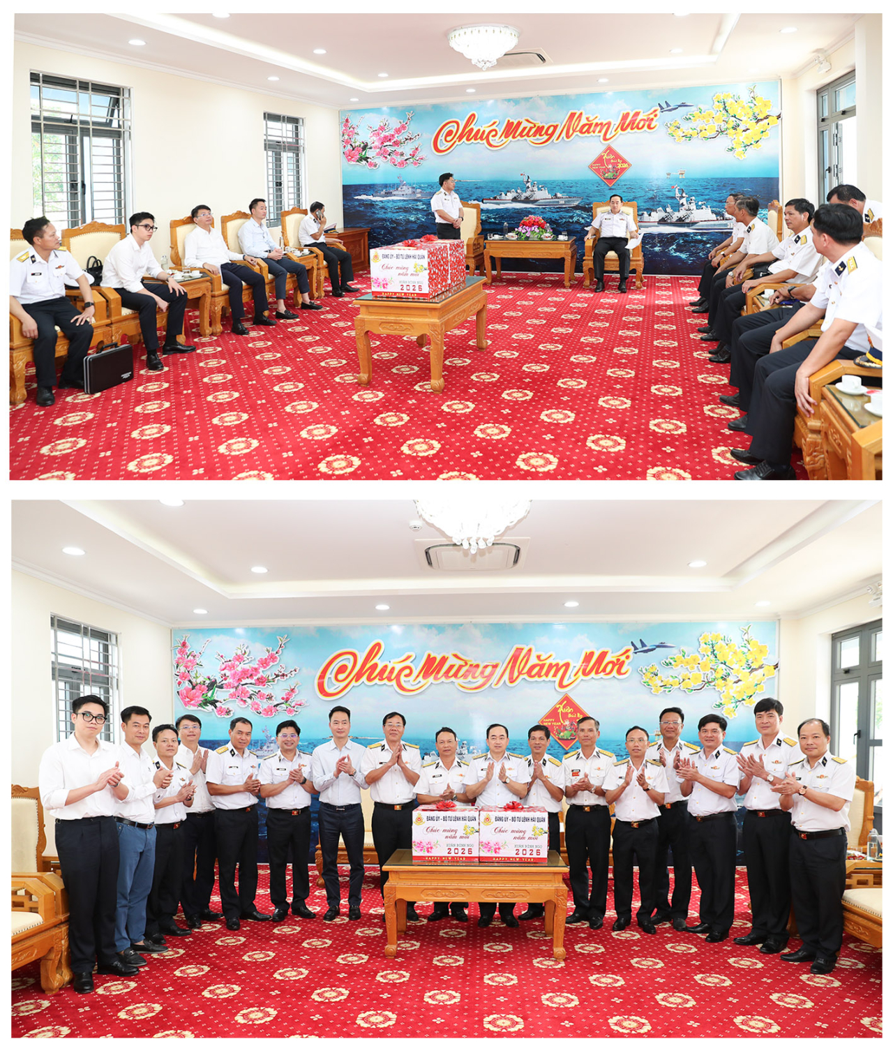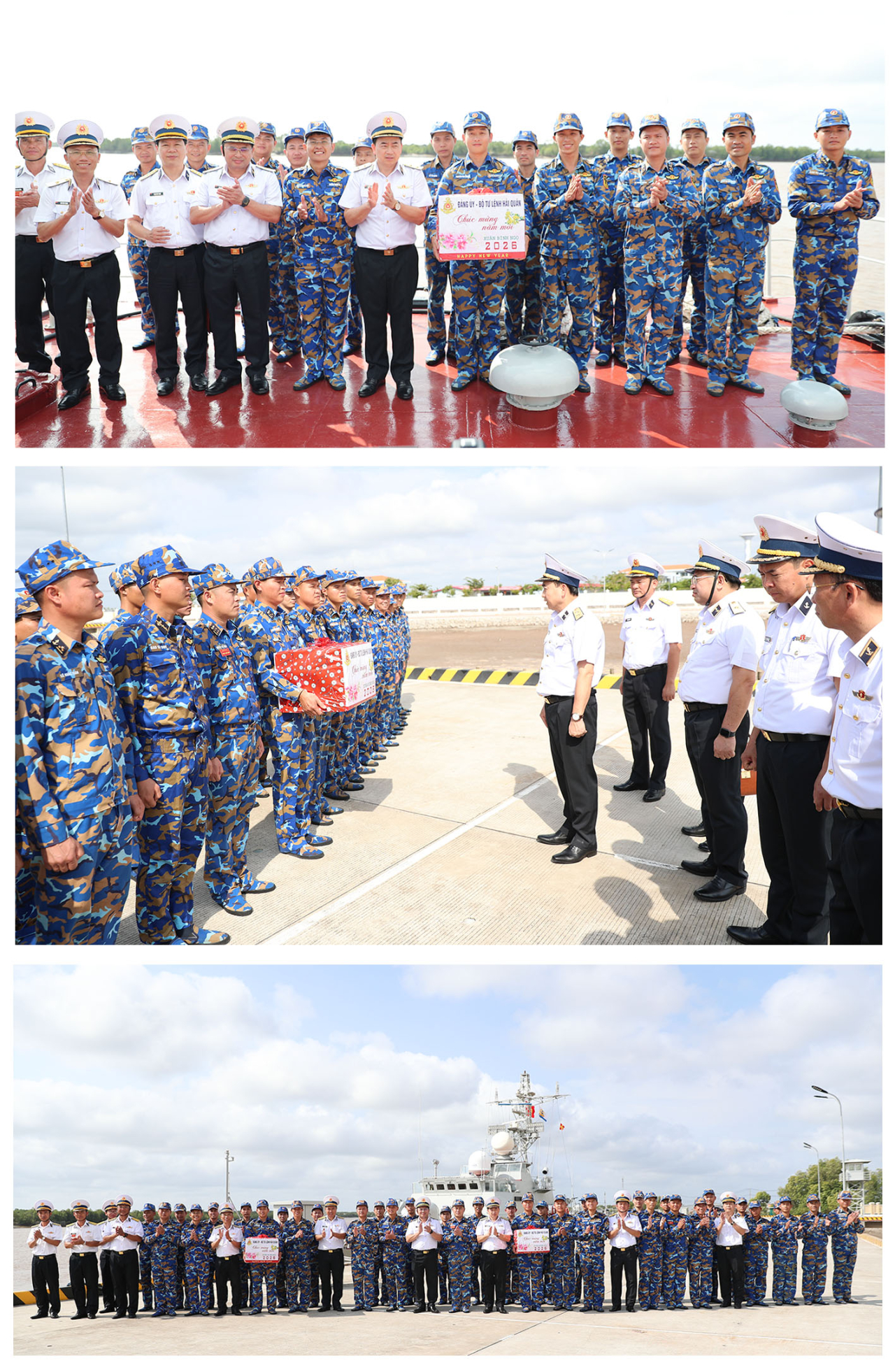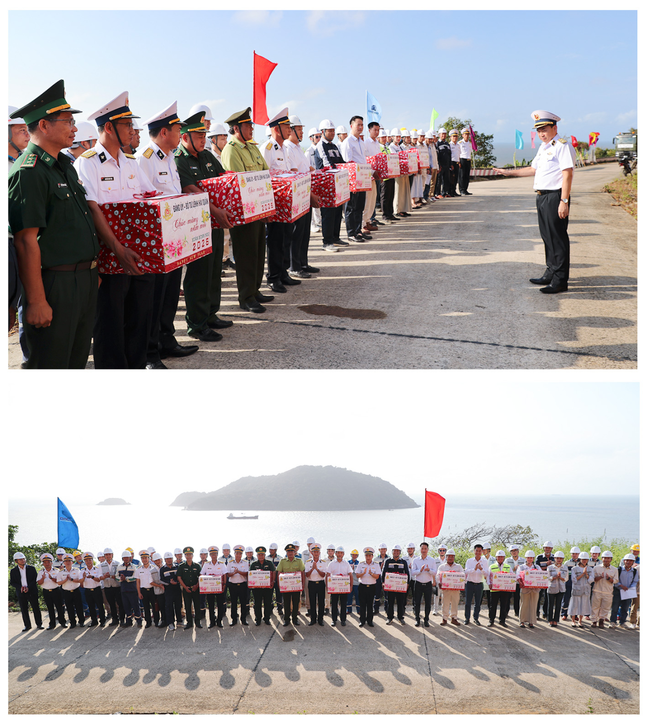 HQ Online - Sáng 31/1, đoàn công tác của Quân chủng Hải quân do Phó Đô đốc Trần Thanh Nghiêm, Ủy viên Trung ương Đảng, Ủy viên Quân ủy Trung ương, Tư lệnh Hải quân chủ trì, tiến hành kiểm tra, tặng quà, chúc tết Trạm ra đa 595, Trung đoàn 551 và Lữ đoàn 175, Vùng 5 Hải quân và các lực lượng trên đảo Hòn Khoai.