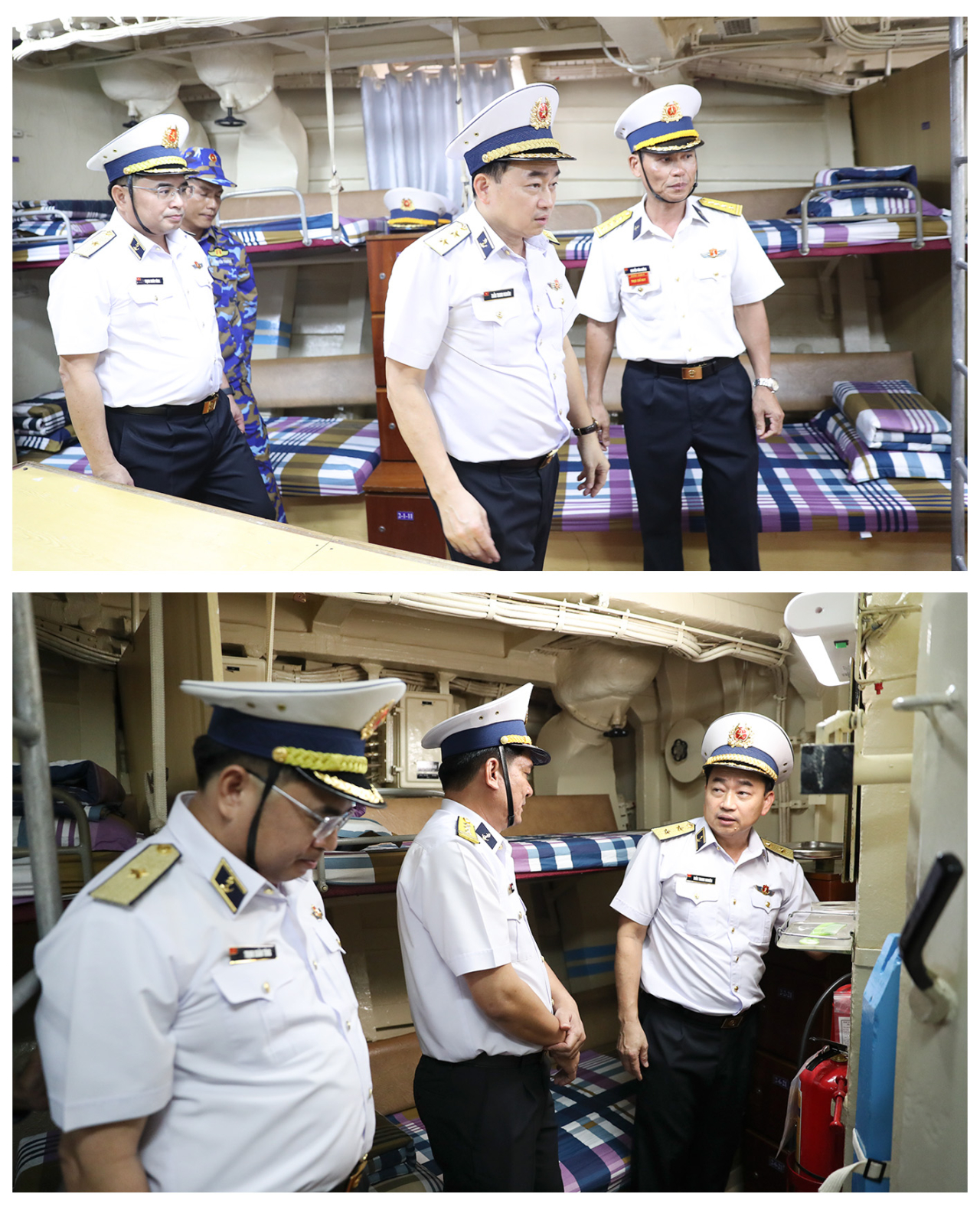 Tham gia đoàn công tác có Đại tá Lê Hồng Quang, Chủ nhiệm Hậu cần-Kỹ thuật Hải quân cùng các cơ quan chức năng Quân chủng.