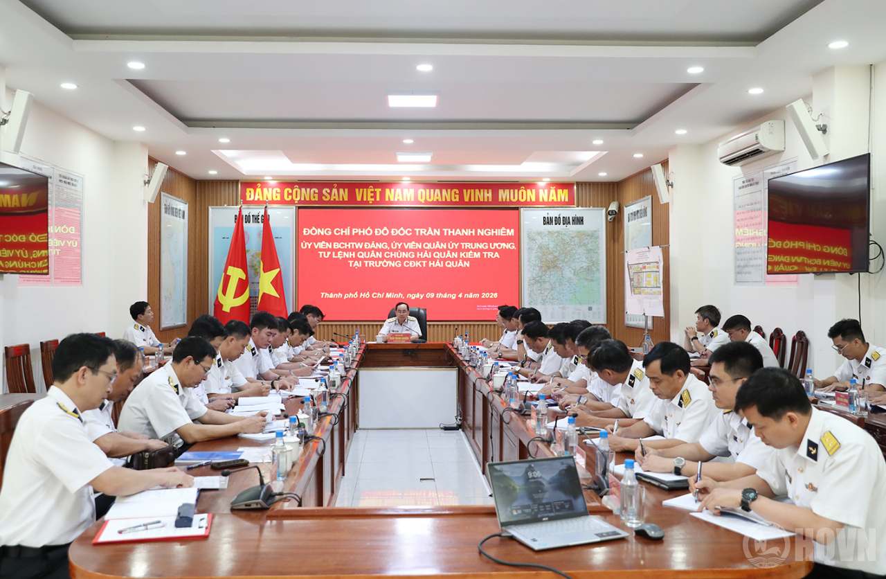 HQ Online - Sáng 9/4, tại TP. Hồ Chí Minh, đoàn kiểm tra do Phó Đô đốc Trần Thanh Nghiêm, Ủy viên Trung ương Đảng, Ủy viên Quân ủy Trung ương, Tư lệnh Hải quân chủ trì đã kiểm tra, làm việc tại Trường Cao đẳng Kỹ thuật Hải quân.