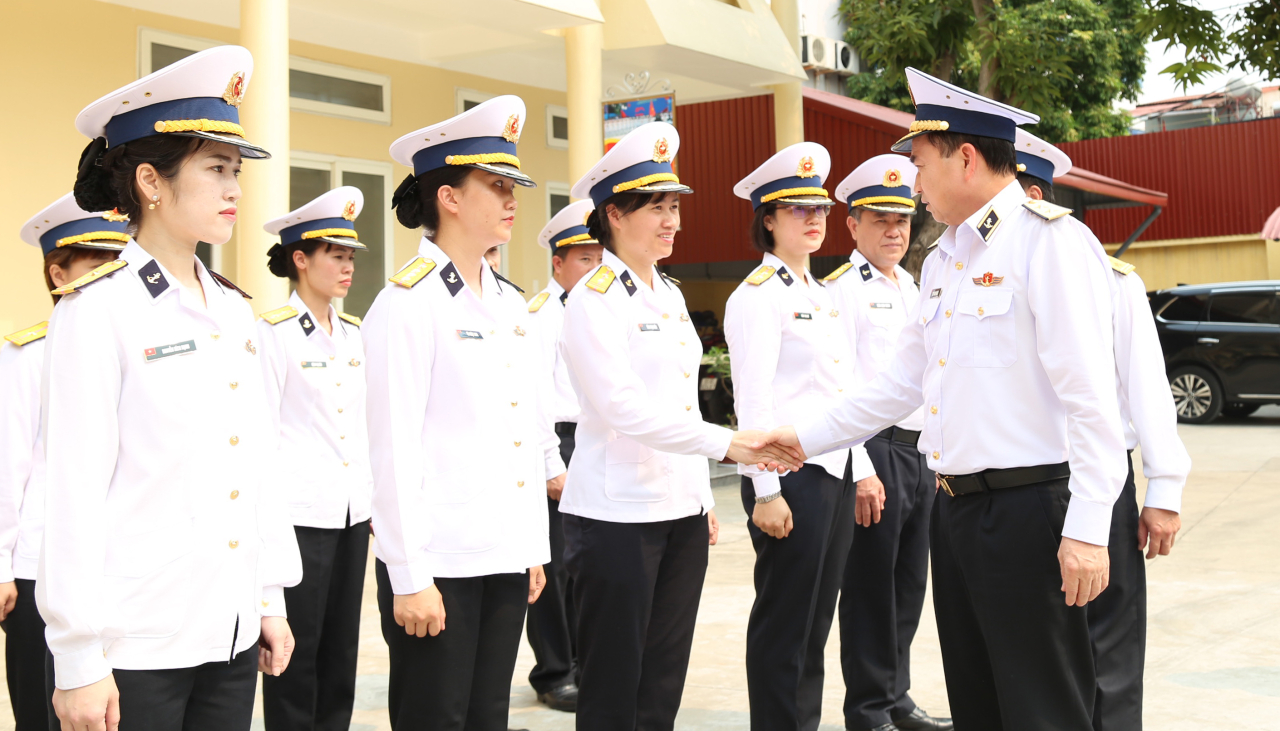 Cán bộ, nhân viên Xưởng in đón đồng chí Tư lệnh Hải quân