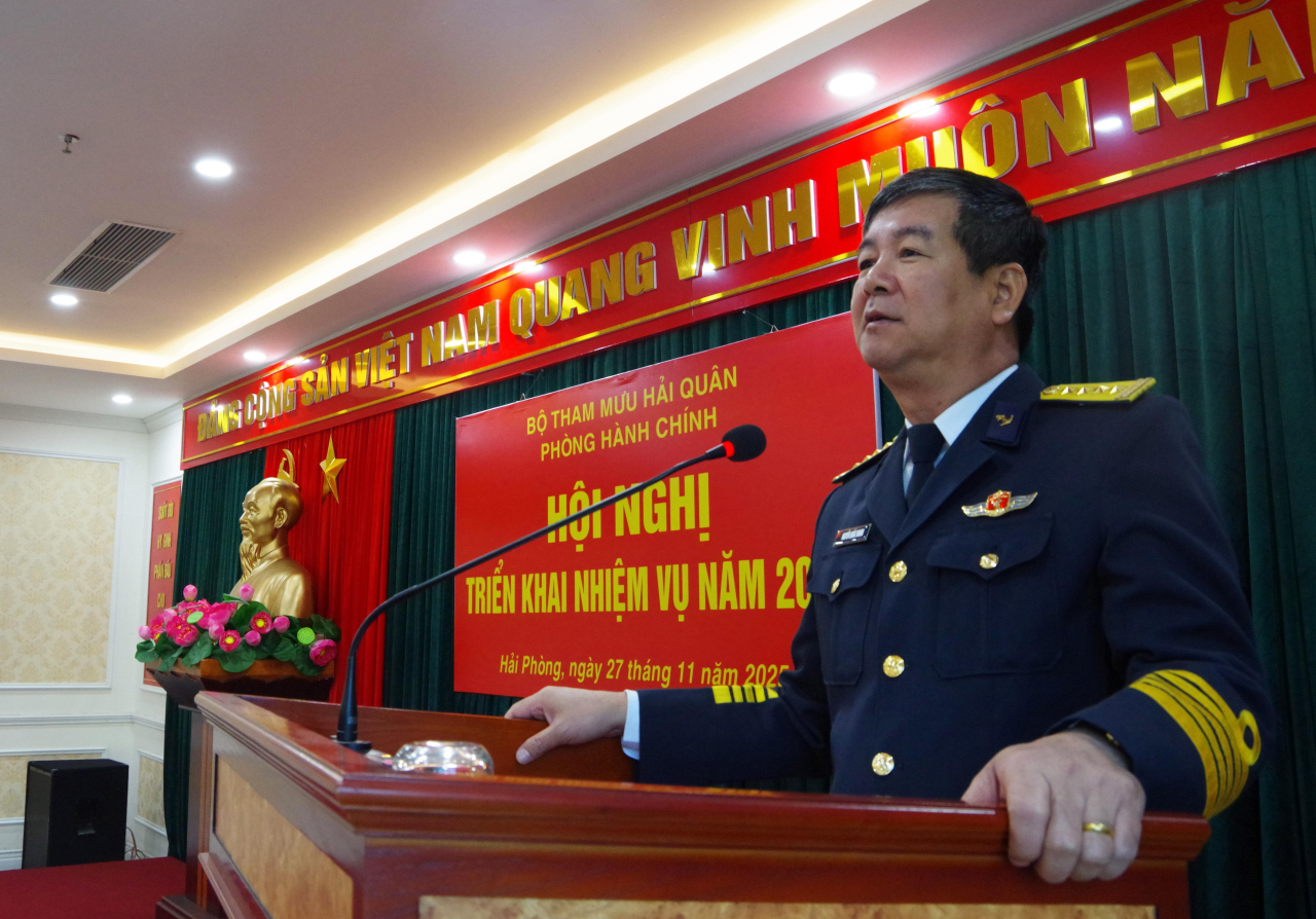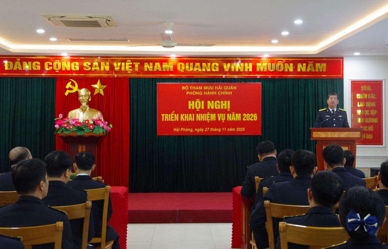 HQ Online - Sáng 27/11, Phòng Hành chính, Bộ Tham mưu Hải quân tổ chức Hội nghị triển khai nhiệm vụ năm 2026. Đại tá Nguyễn Quốc Doanh, Phó Tham mưu trưởng Hải quân dự và chỉ đạo hội nghị.