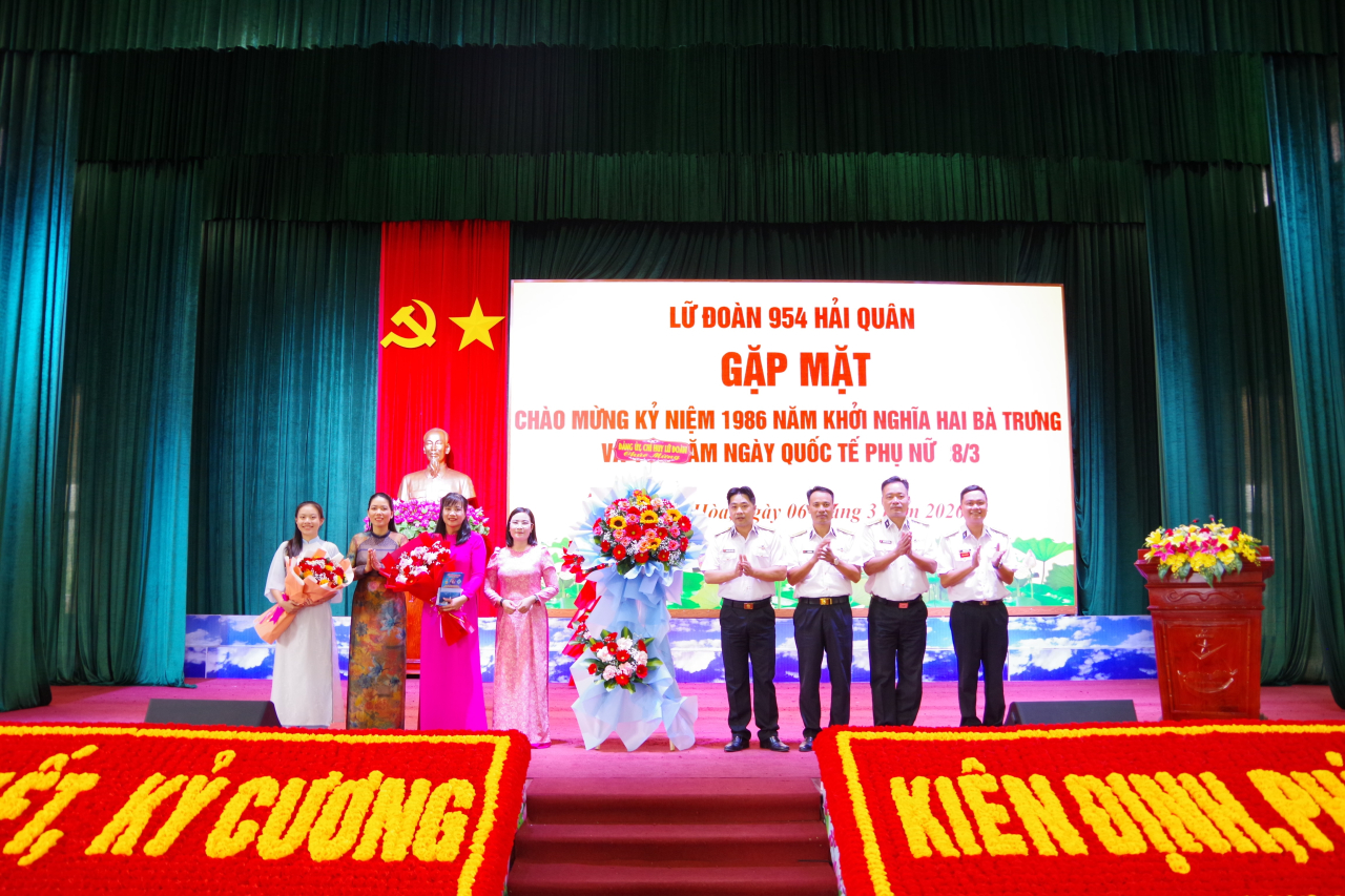 Phát biểu động viên tại buổi gặp mặt, Đại tá Bùi Đình Tiệp đã gửi lời chúc mừng tốt đẹp nhất tới chị em phụ nữ; ghi nhận và biểu dương những đóng góp thiết thực của cán bộ, hội viên phụ nữ 5 đơn vị trong công tác tham mưu, thực hiện nhiệm vụ chính trị và xây dựng môi trường văn hóa lành mạnh. Đồng chí nhấn mạnh: Phụ nữ Hải quân đã và đang phát huy tốt phẩm chất “Anh hùng, bất khuất, trung hậu, đảm đang”, sát cánh cùng cán bộ, chiến sĩ vượt qua khó khăn, hoàn thành tốt nhiệm vụ trong kỷ nguyên mới.