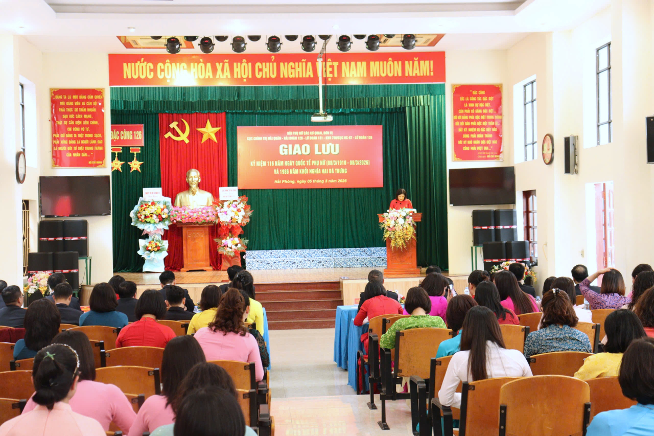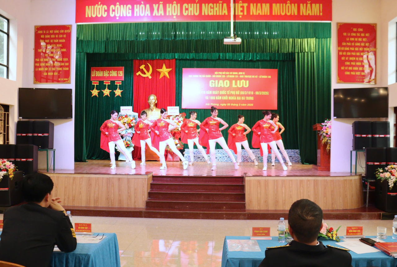 HQ Online - Ngày 5/3, tại Hải Phòng, Hội Phụ nữ Lữ đoàn Đặc công Hải quân 126 phối hợp với Hội Phụ nữ cơ quan Cục Chính trị Hải quân, Lữ đoàn 131, Hải đoàn 128, Kho 700 (Cục Hậu cần - Kỹ thuật) tổ chức chương trình giao lưu chào mừng kỷ niệm 116 năm Ngày Quốc tế phụ nữ và 1986 năm khởi nghĩa Hai Bà Trưng.