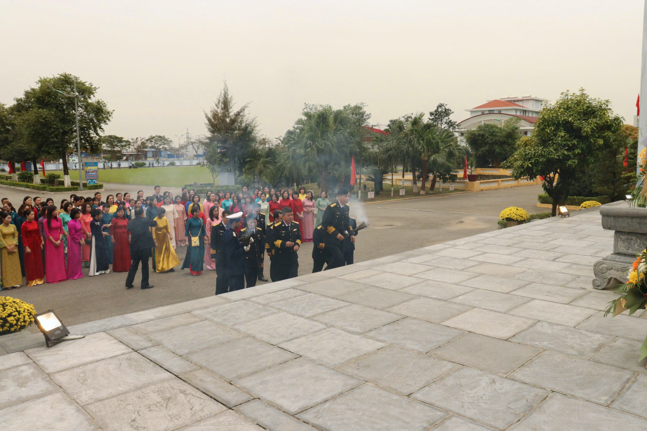 Các đại biểu tham dự chương trình gặp mặt kỷ niệm 116 năm Ngày Quốc tế phụ nữ 8/3 và 1986 năm khởi nghĩa Hai Bà Trưng dâng hương tưởng niệm các anh hùng liệt sĩ Đặc công Hải quân