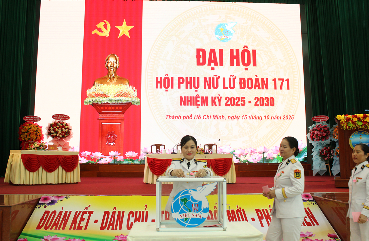 HQ Online - Sáng 15/10, tại phường Phước Thắng (TP Hồ Chí Minh), Lữ đoàn 171, Vùng 2 Hải quân tổ chức Đại hội Hội phụ nữ nhiệm kỳ 2025 - 2030. Đây là đại hội làm trước để rút kinh nghiệm trong toàn Vùng. Tới dự có Đại tá Lê Hồng Quang, Phó Chủ nhiệm Chính trị Vùng; đại diện các đơn vị thuộc Vùng và lãnh đạo, chỉ huy Lữ đoàn.