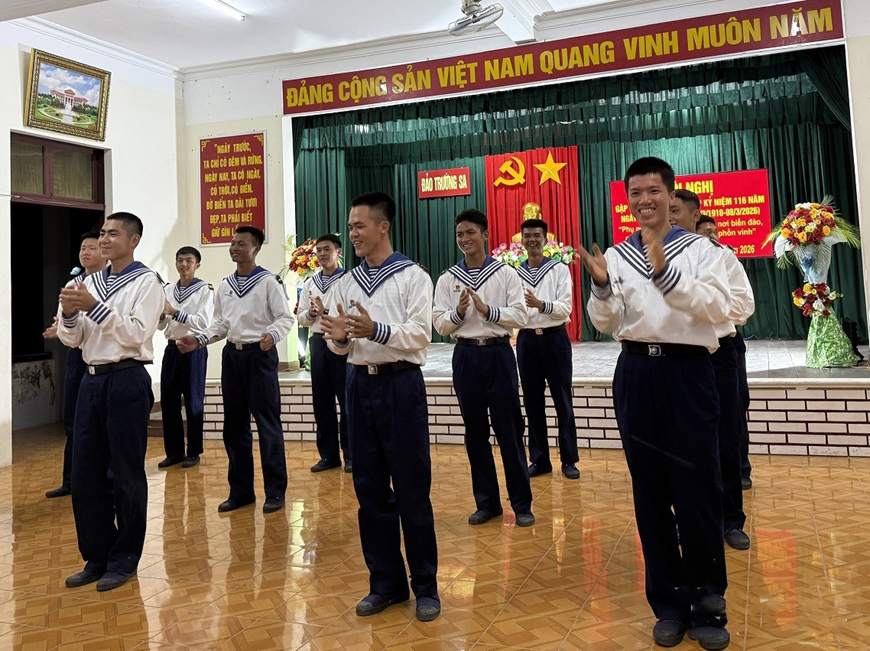 Trong không khí vui tươi, phấn khởi, các đại biểu dự chương trình đã cùng thưởng thức các tiết mục văn nghệ đặc sắc do cán bộ, chiến sĩ và nhân dân đang sinh sống, công tác trên đảo biểu diễn.