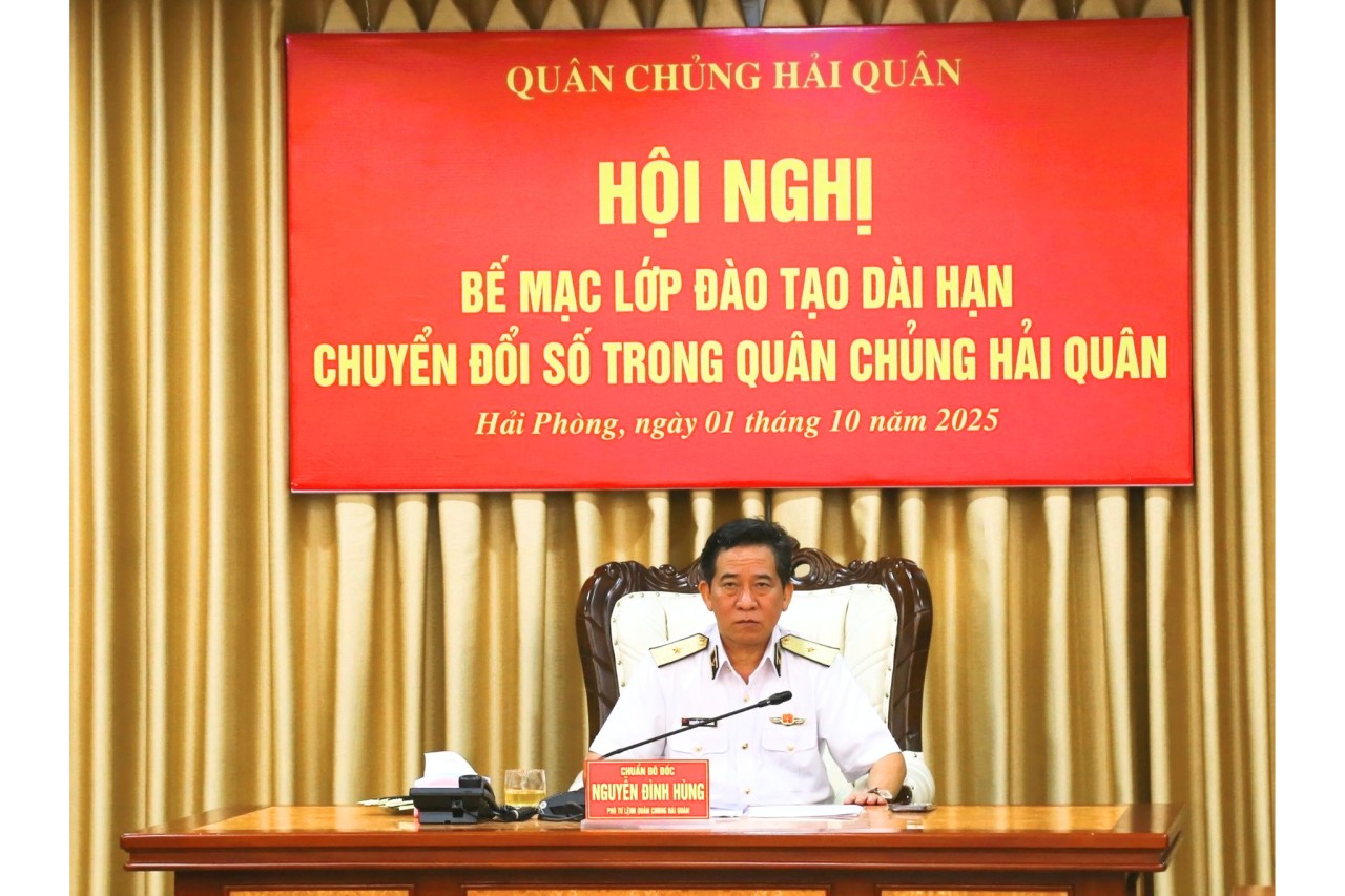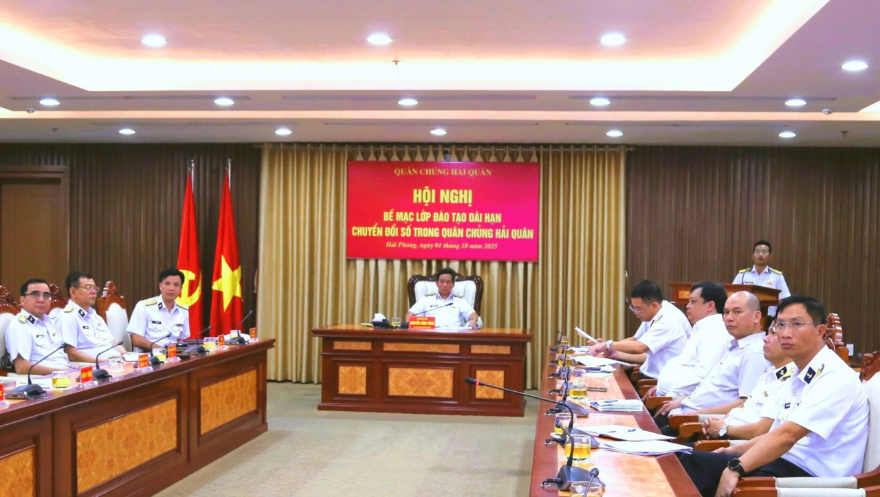 HQ Online - Chiều 1/10, tại Hải Phòng, Quân chủng Hải quân tổ chức bế mạc lớp đào tạo dài hạn chuyển đổi số trong Quân chủng Hải quân năm 2025. Hội nghị được tổ chức trực tiếp tại cơ quan Bộ Tư lệnh Hải quân và trực tuyến đến các điểm cầu trong Quân chủng.