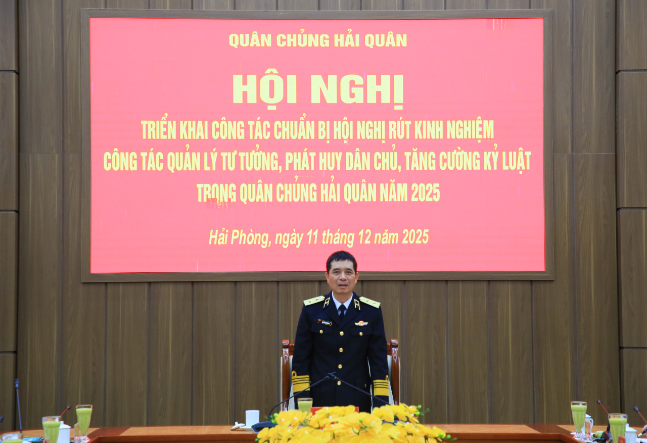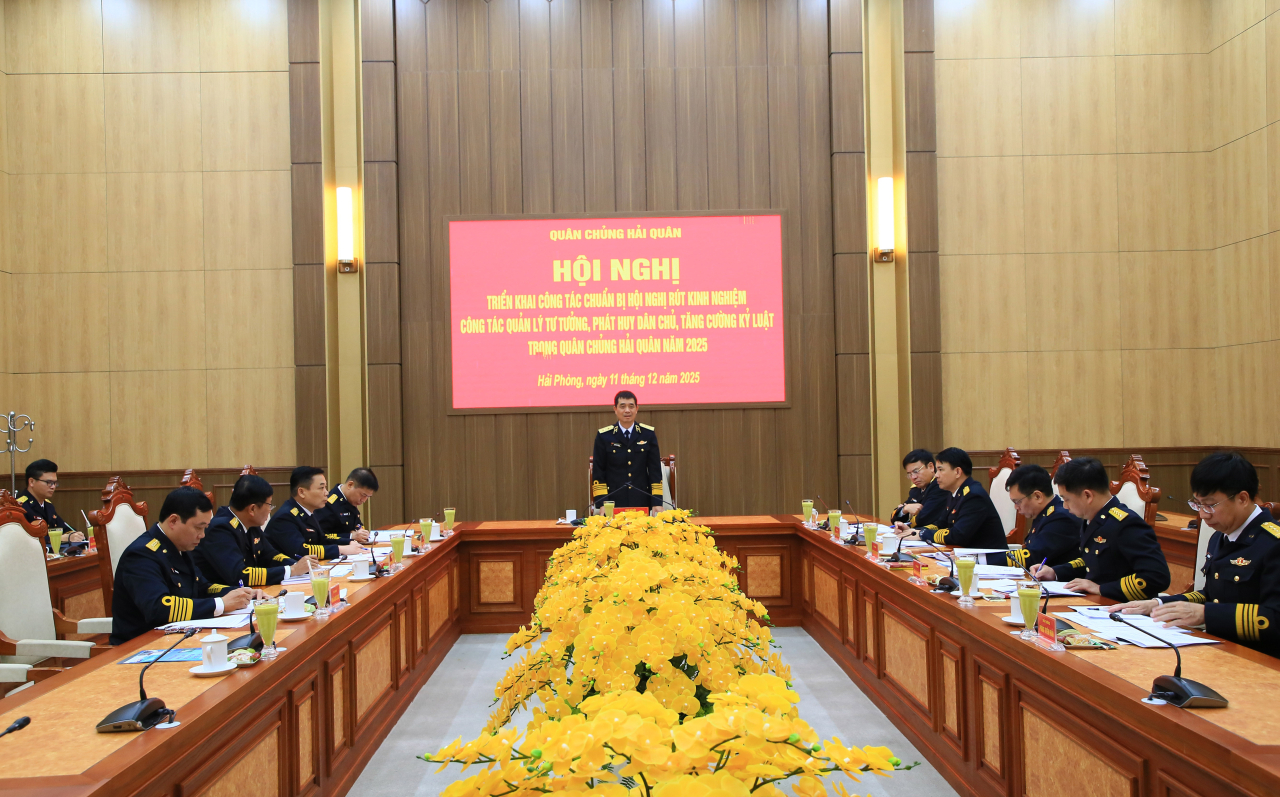HQ Online - Chiều 11/12, tại Hải Phòng, Quân chủng Hải quân tổ chức Hội nghị triển khai công tác chuẩn bị Hội nghị rút kinh nghiệm công tác quản lý tư tưởng, phát huy dân chủ, tăng cường kỷ luật năm 2025. Phó Đô đốc Nguyễn An Phong, Bí thư Đảng ủy, Chính ủy Hải quân chủ trì hội nghị.